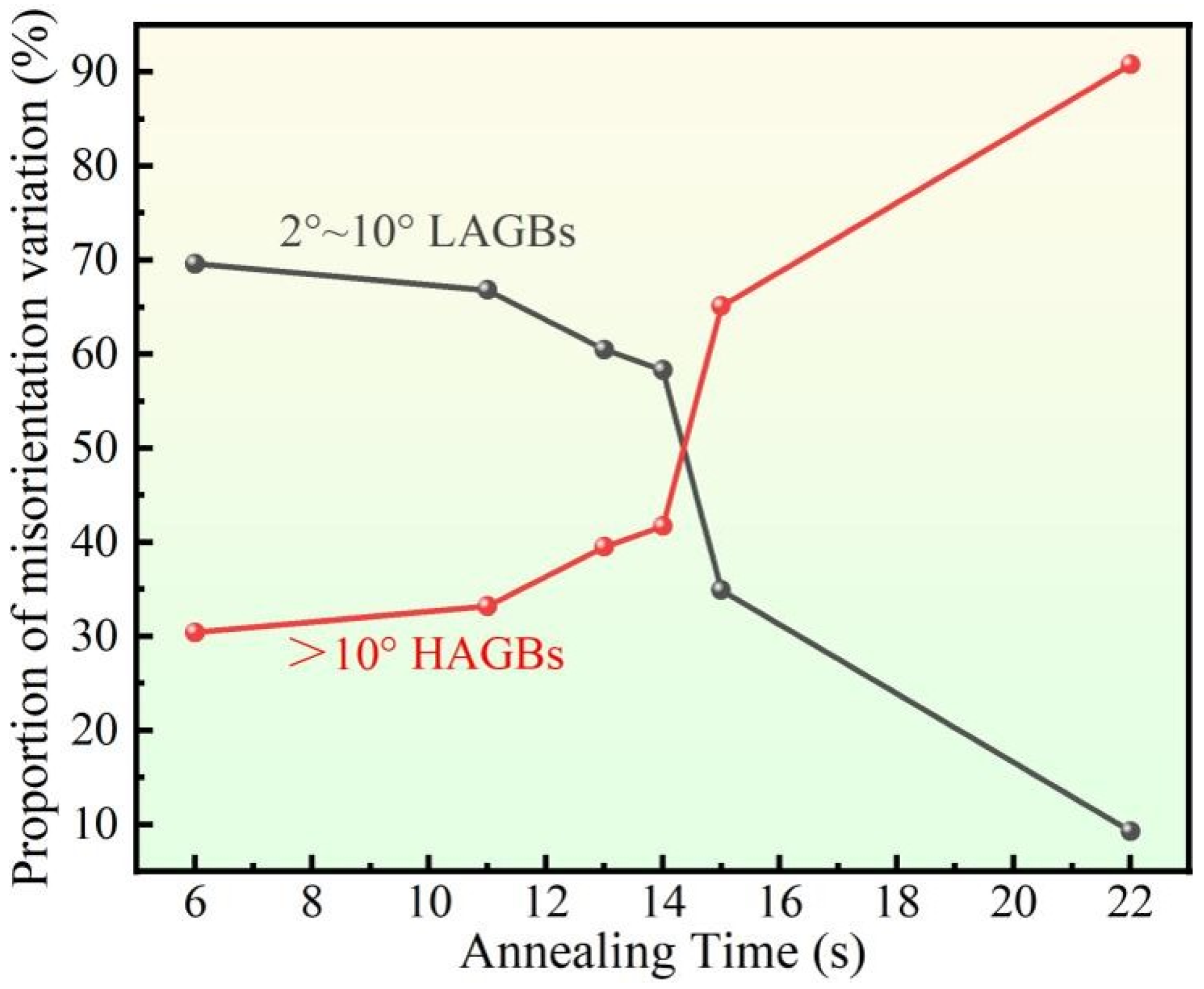| Annealing Time (s) | Recrystallized Fraction (%) | LAGBs (2~10°) | HAGBs (>10°) |