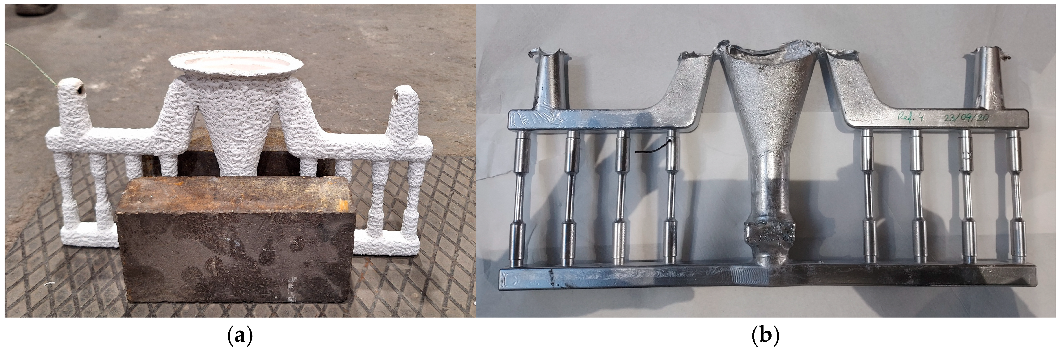 - Previtali, B.; Pocci, D.; Taccardo, C. Application of traditional investment casting process to aluminium matrix composites. Compos. Part. A Appl. Sci. Manuf. 2008, 39, 1606–1617. [Google Scholar] [CrossRef]