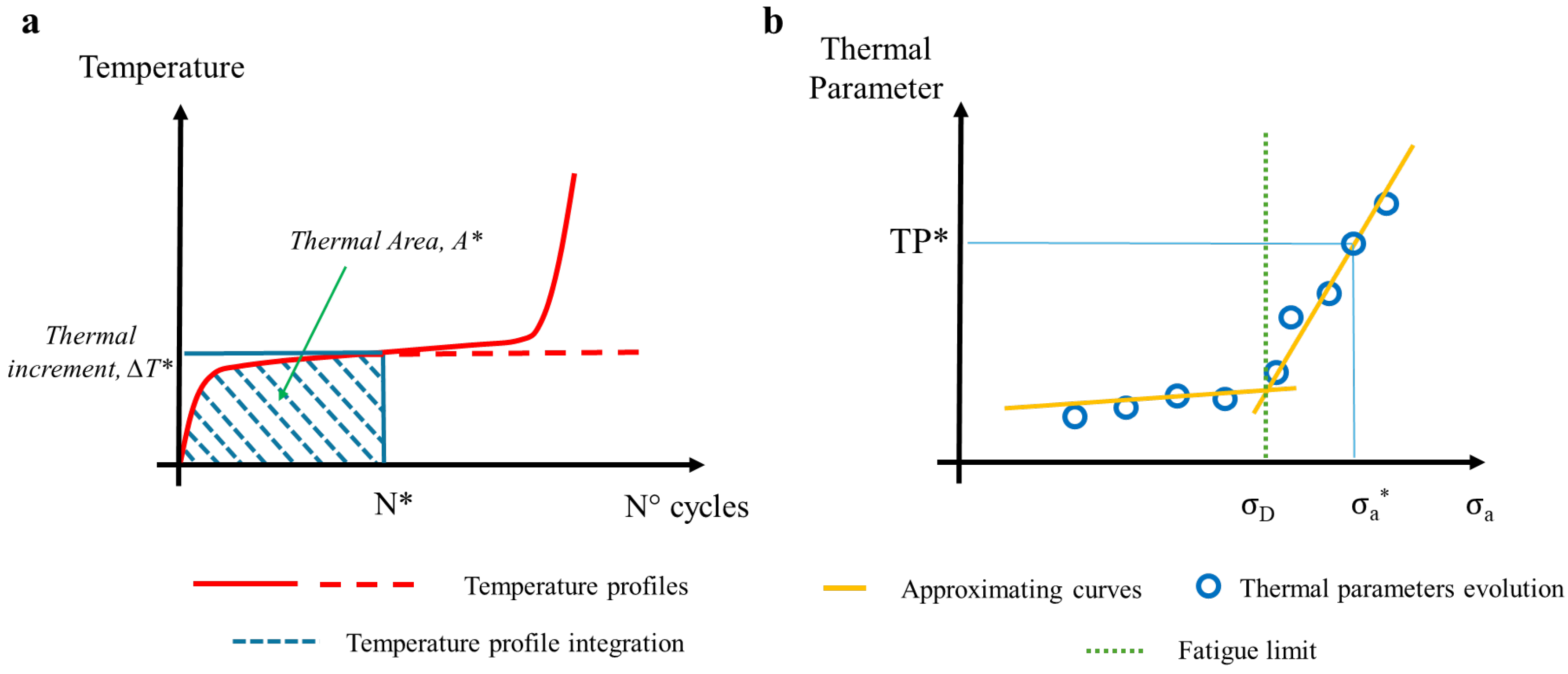 - Curà, F.; Curti, G.; Sesana, R. A new iteration method for the thermographic determination of fatigue limit in steels. Int. J. Fatigue 2005, 27, 453–459. [Google Scholar] [CrossRef]