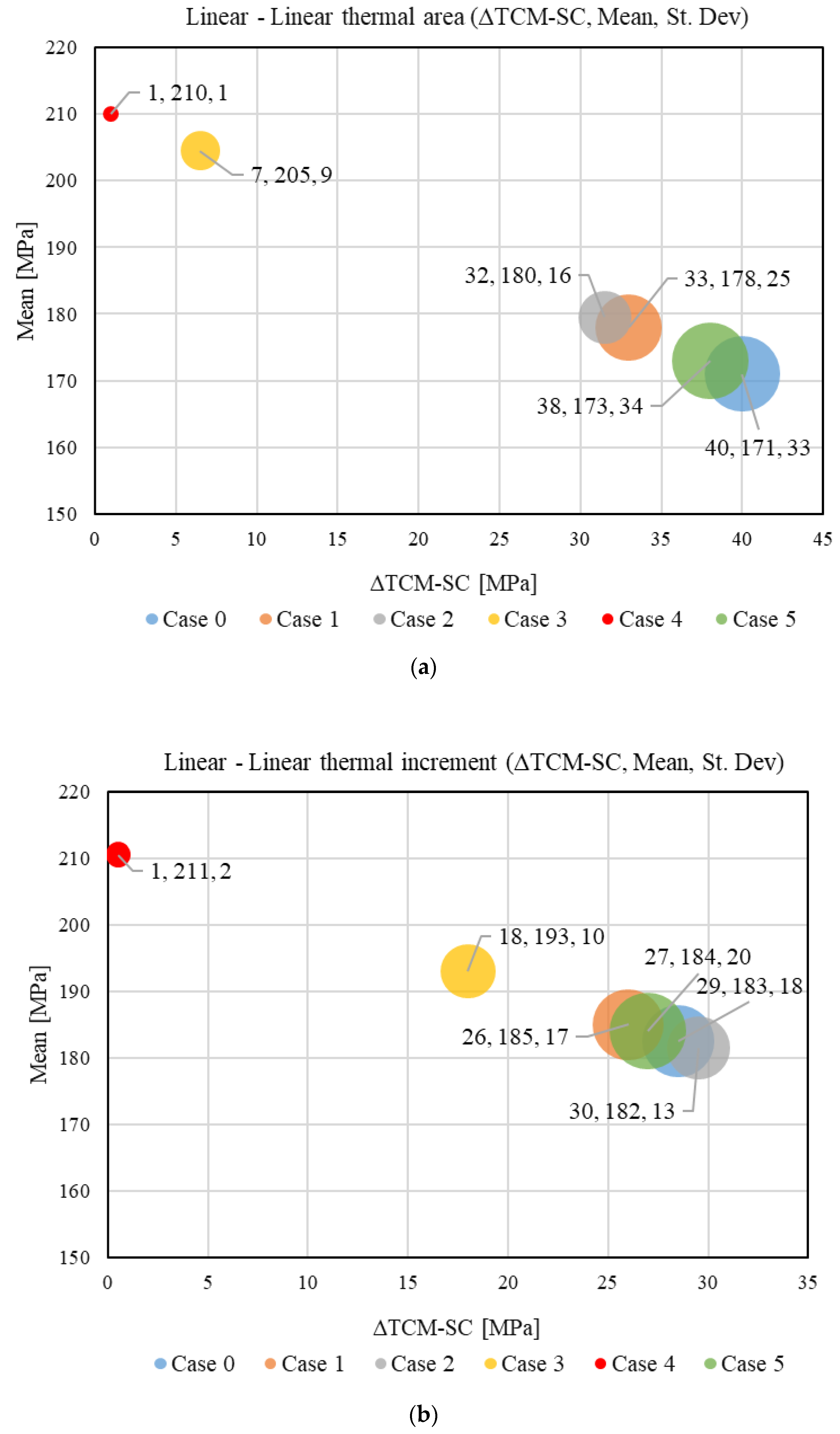 - Case 3 (6 points for the original dataset—11 points for the optimised dataset after the augmentation): the first case of the second optimisation strategy involved the selection of only six central points from the original dataset (Case 0) as the starting point.