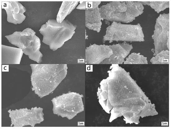 SEM images of alumina and silver-plated alumina. (a) Al2O3 raw powder; silver-plated alumina at different temperatures: (b) 25 °C; (c) 30 °C; (d) 40 °C.