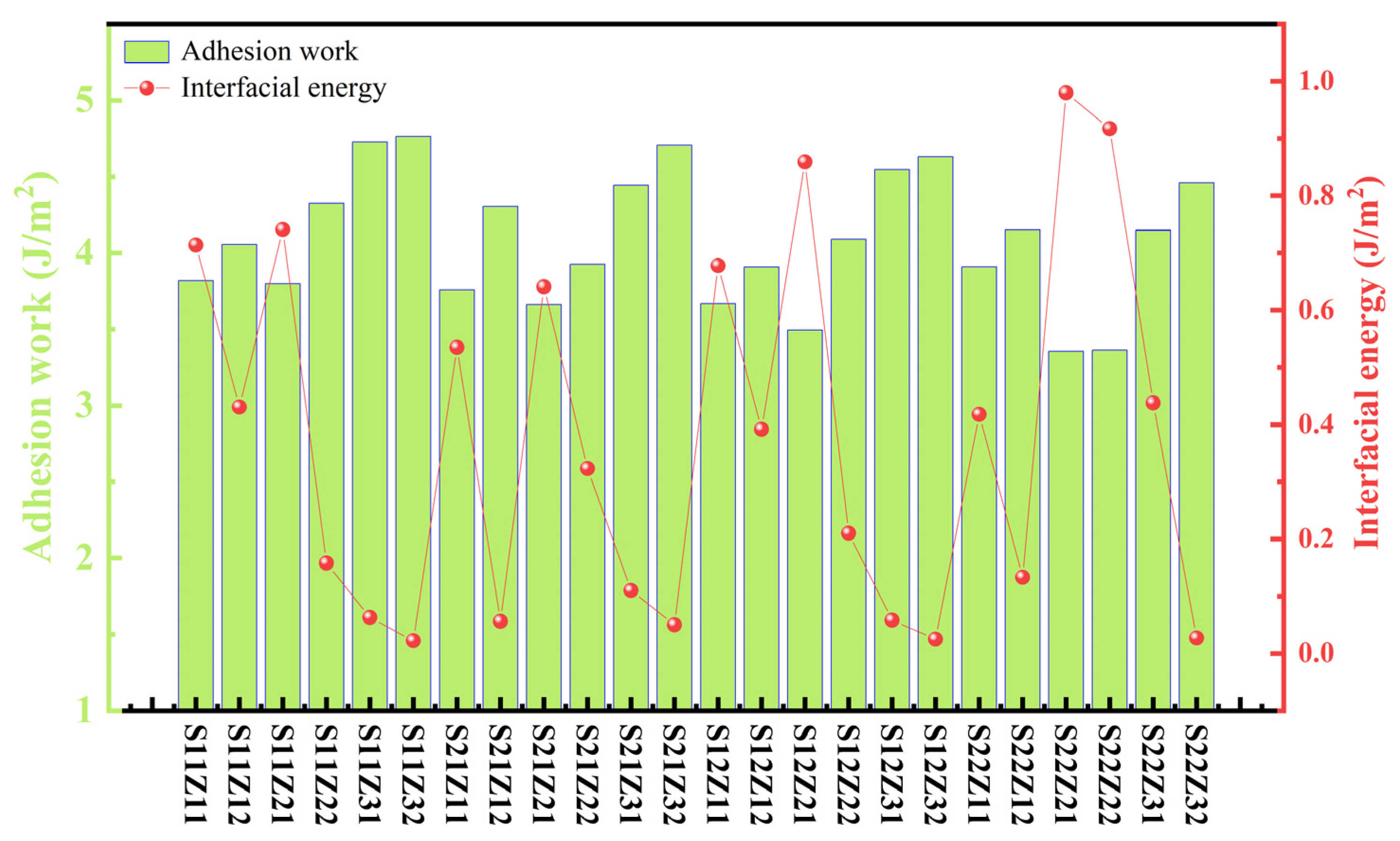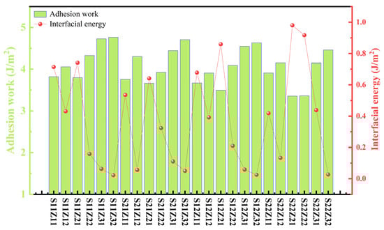 3.4. Adhesion Work and Interfacial Energy
