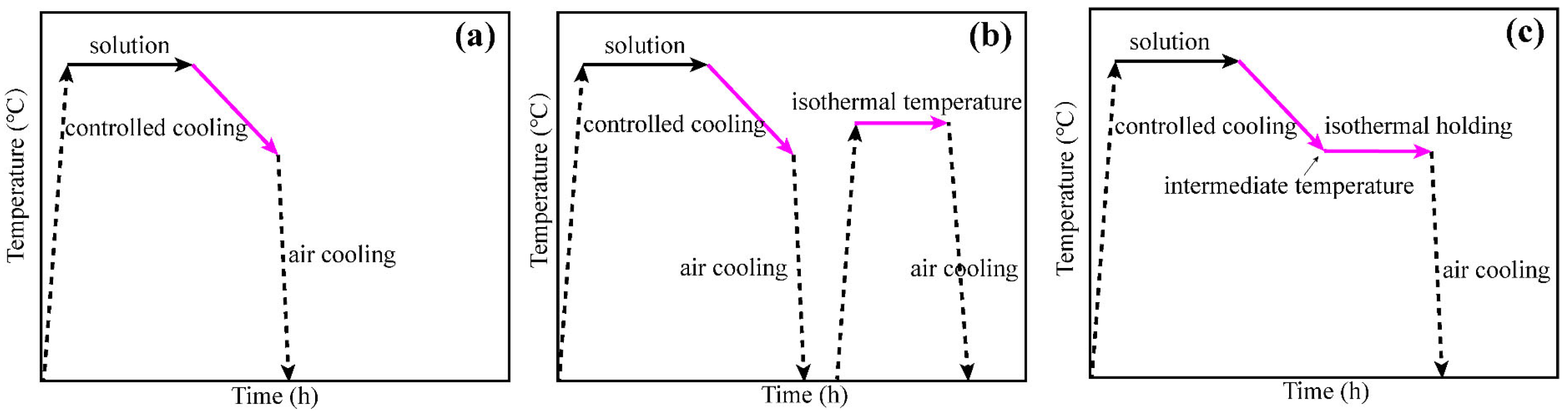 | Solution °C & h | Cooling Rate °C/min | Slow Cooling Termination Temperature °C | Isothermal Treatment °C & h | Re-Dissolution Treatment °C & h | Cooling Method | |