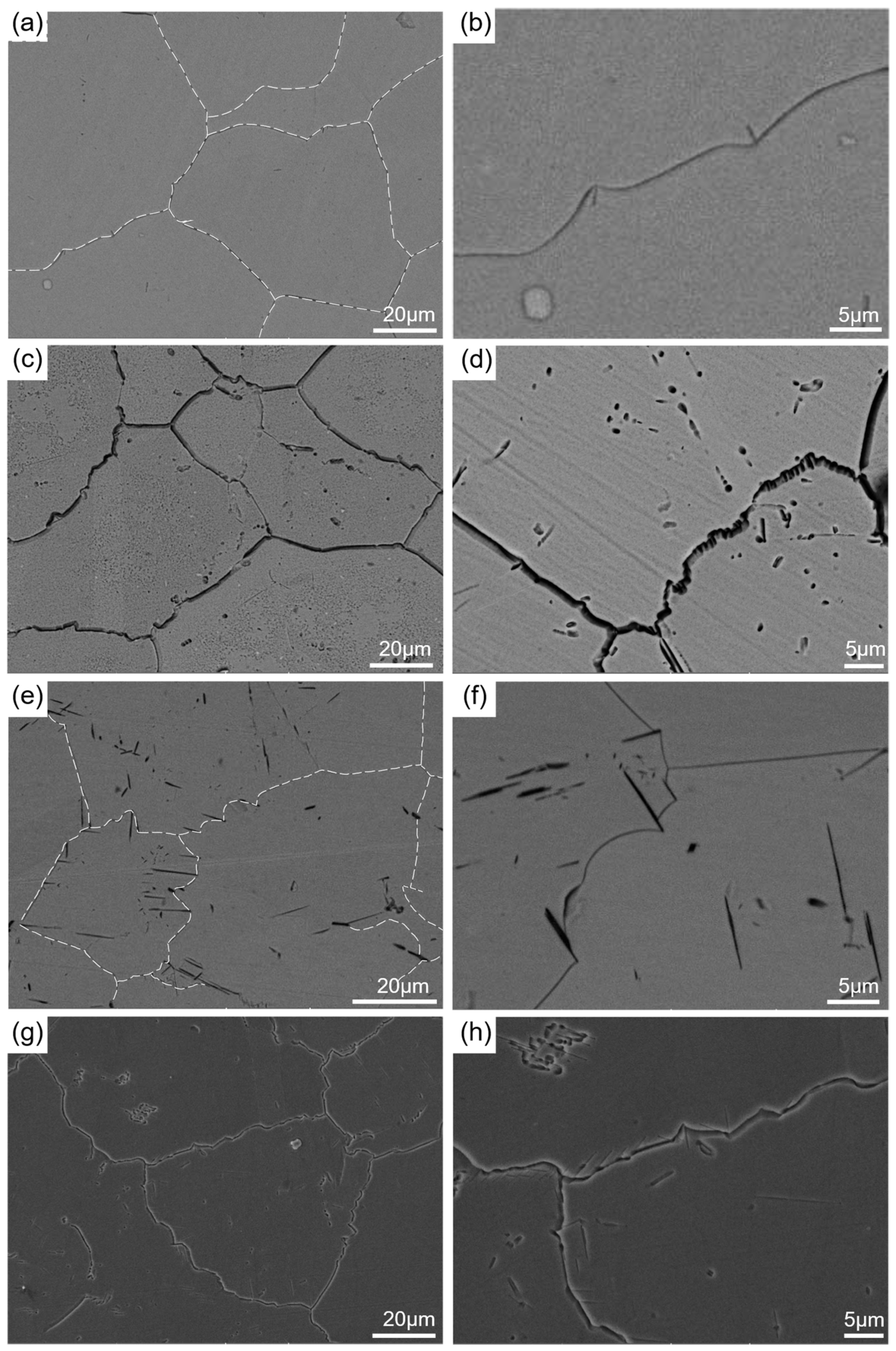 4.2. Effect of Heat Treatment Process Type on Grain Boundary Morphology