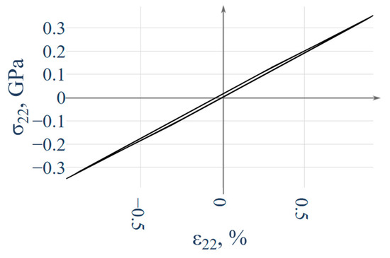 Finite element simulations in Abaqus were performed on a representative grain region containing a 1 μm spherical MnO inclusion. The domain size was ten times the inclusion diameter [69,79,86], ensuring accurate reproduction of stress–strain states near the inclusion [69,87,88] (Figure 10a). The boundary conditions were defined based on the type of applied loading program. Tension along the unit vector , illustrated in Figure 10b, corresponds to the following equations: