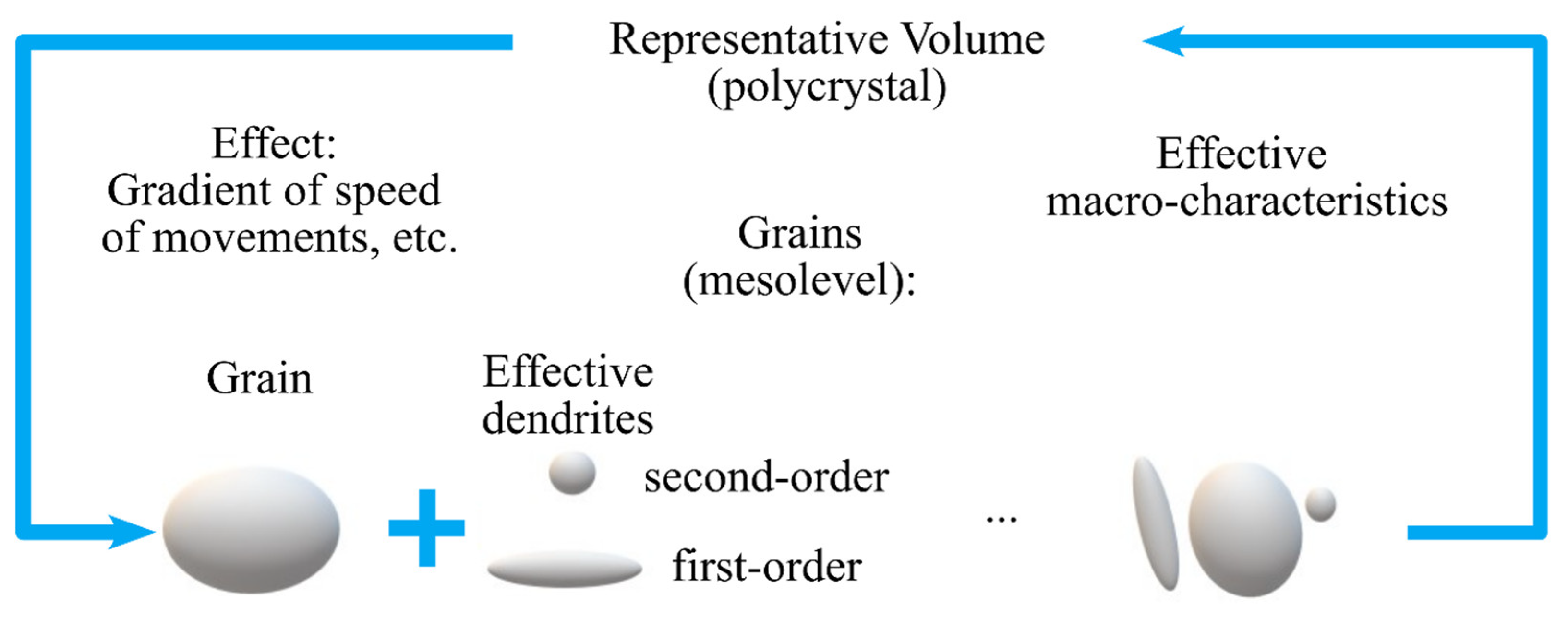 - Trusov, P.V.; Shveykin, A.I.; Kondratyev, N.S.; Yants, A.Y. Multilevel Models in Physical Mesomechanics of Metals and Alloys: Results and Prospects. Phys. Mesomech. 2021, 24, 391–417. [Google Scholar] [CrossRef]