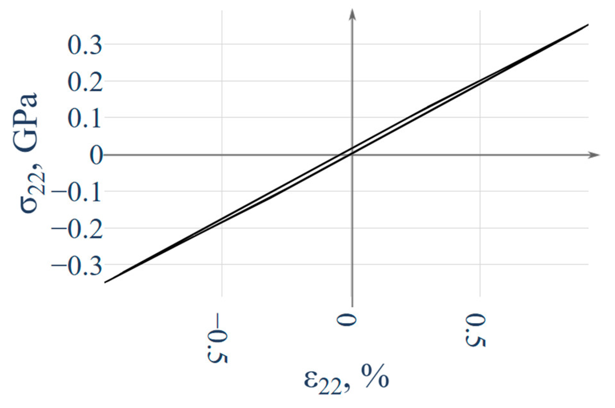 | Anisotropic elastic moduli [27], , GPa | Identification procedure (experimental research data—loading diagram Figure 7a) | |