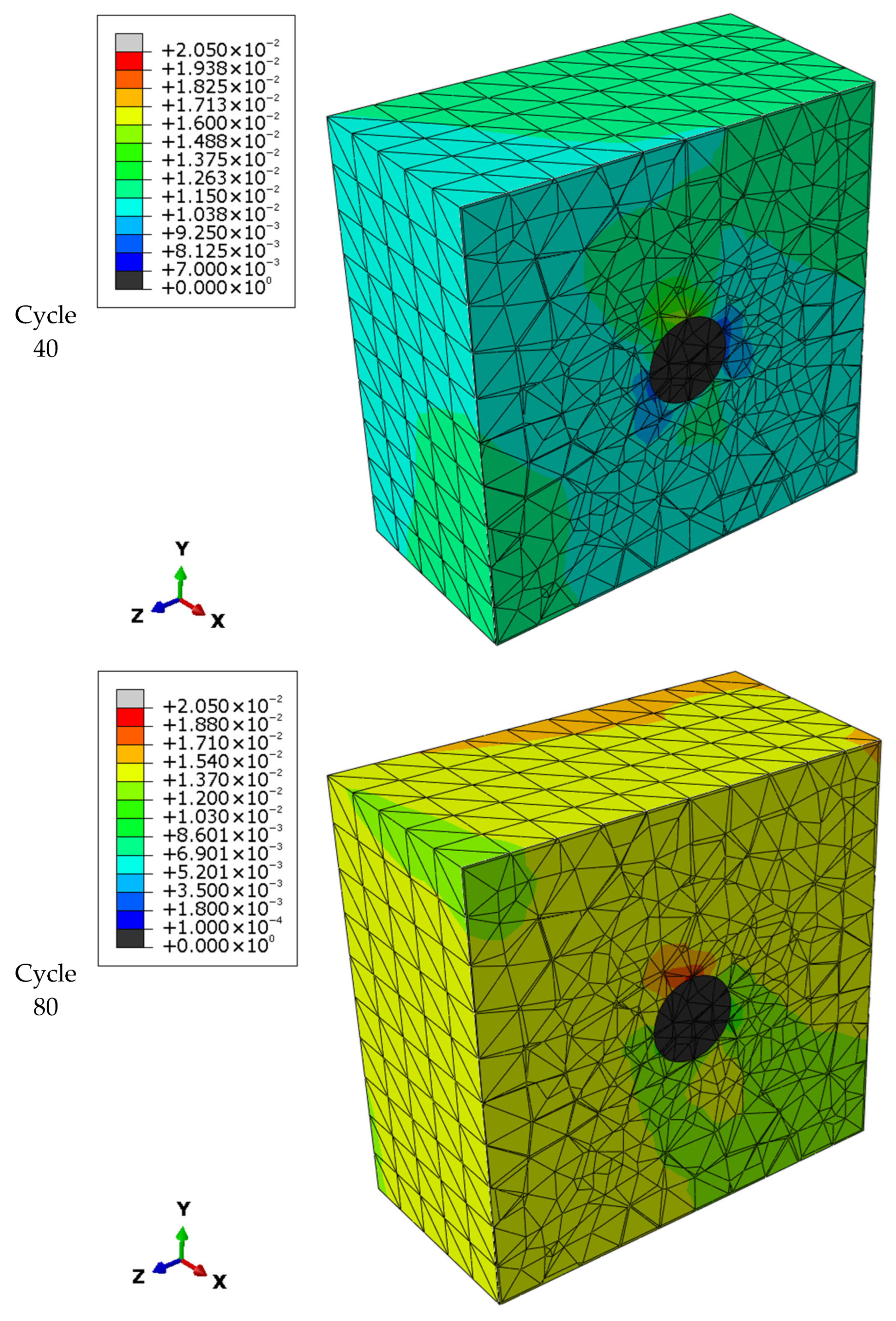 3.2. Modeling the Behavior of 308LSi Austenitic Steel with Explicit Topological Consideration of MnO Inclusions Under Cyclic Loading