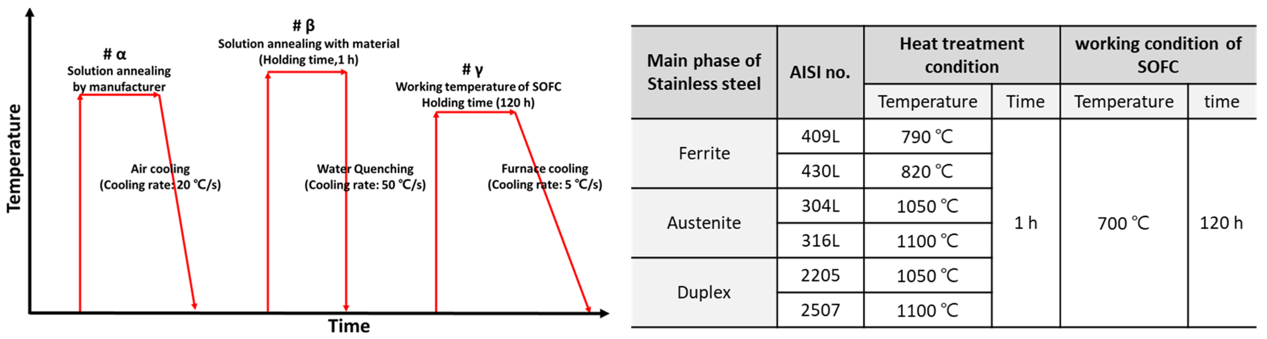 - Shin, B.-H.; Park, J.; Jeon, J.; Heo, S.; Chung, W. Effect of Cooling Rate after Heat Treatment on Pitting Corrosion of Super Duplex Stainless Steel UNS S 32750. Anti-Corros. Methods Mater. 2018, 65, 492–498. [Google Scholar]