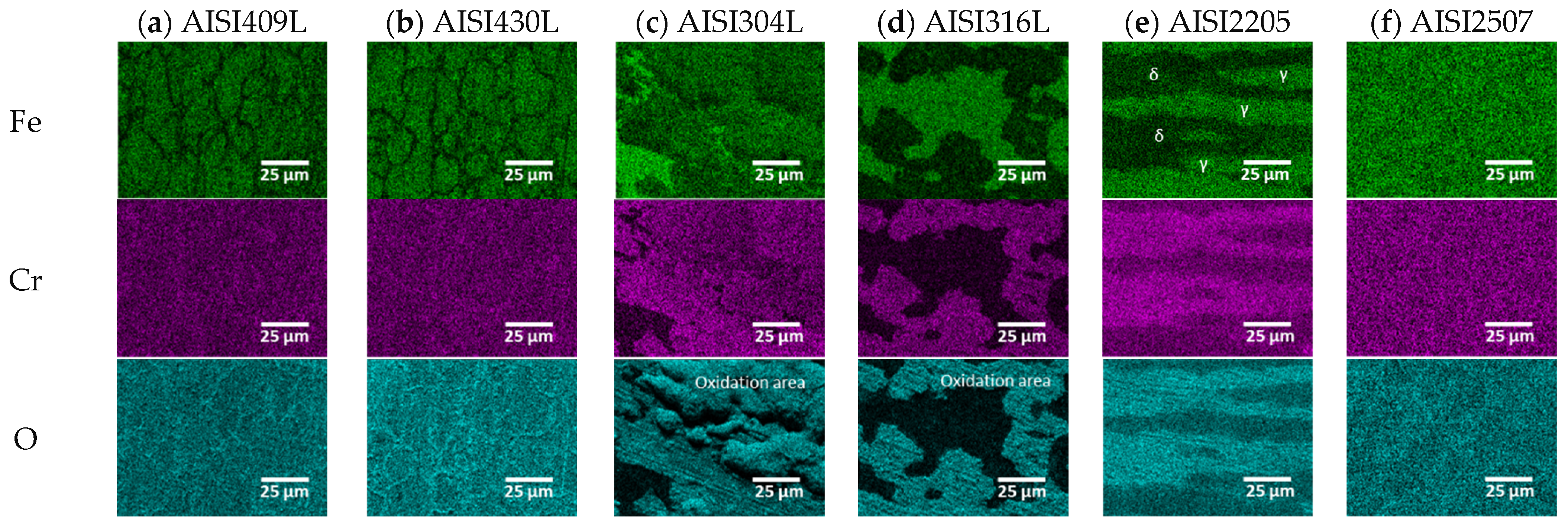 | 430L | AISI430L | Ferrite | 26.27 ± 6.3 | 57.95 ± 6.1 | 15.78 ± 5.1 |
