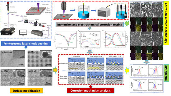 The present study investigates the impact of femtosecond laser shock peening (FLSP) on the corrosion resistance of an AZ31 magnesium alloy. The alloy was subjected to irradiation with varying pulse energies in an air environment, and subsequent modifications in surface properties were characterized. [...] Read more.