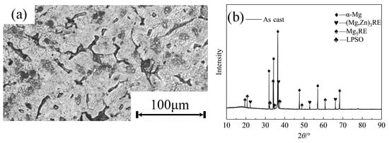 Microstructure and XRD of as-cast alloy: (a) metallography; (b) XRD pattern.