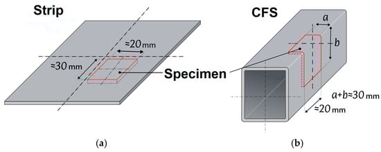 Diagram of specimen extraction from strip (a) and CFS (b).