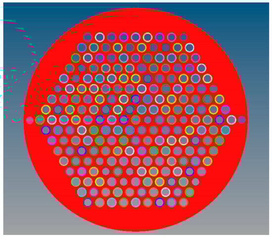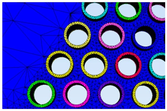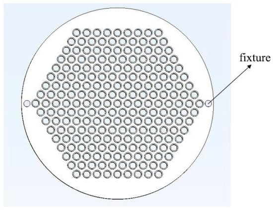 The diameter of the large-scale tube-to-tubesheet joint arrays model is 600 mm. The tube sheet thickness is 12 mm and has 217 holes in the middle. The center distance between the tubes is 32 mm, arranged in a positive triangular way. The inner diameter of individual tubes is 20 mm, and the outer diameter is 25 mm. The connection between the tubes and the tube sheet is a flush type, as shown in Figure 1.
