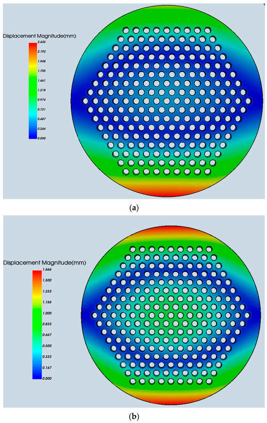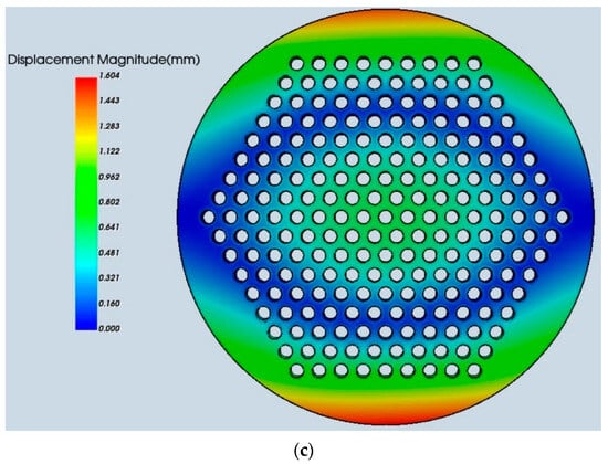 Simulation results of welding deformation are shown in Figure 8, and the axial deformation of specified points, as well as the maximum axial deformation of the tube sheet under the three welding schemes, are presented in Table 4.