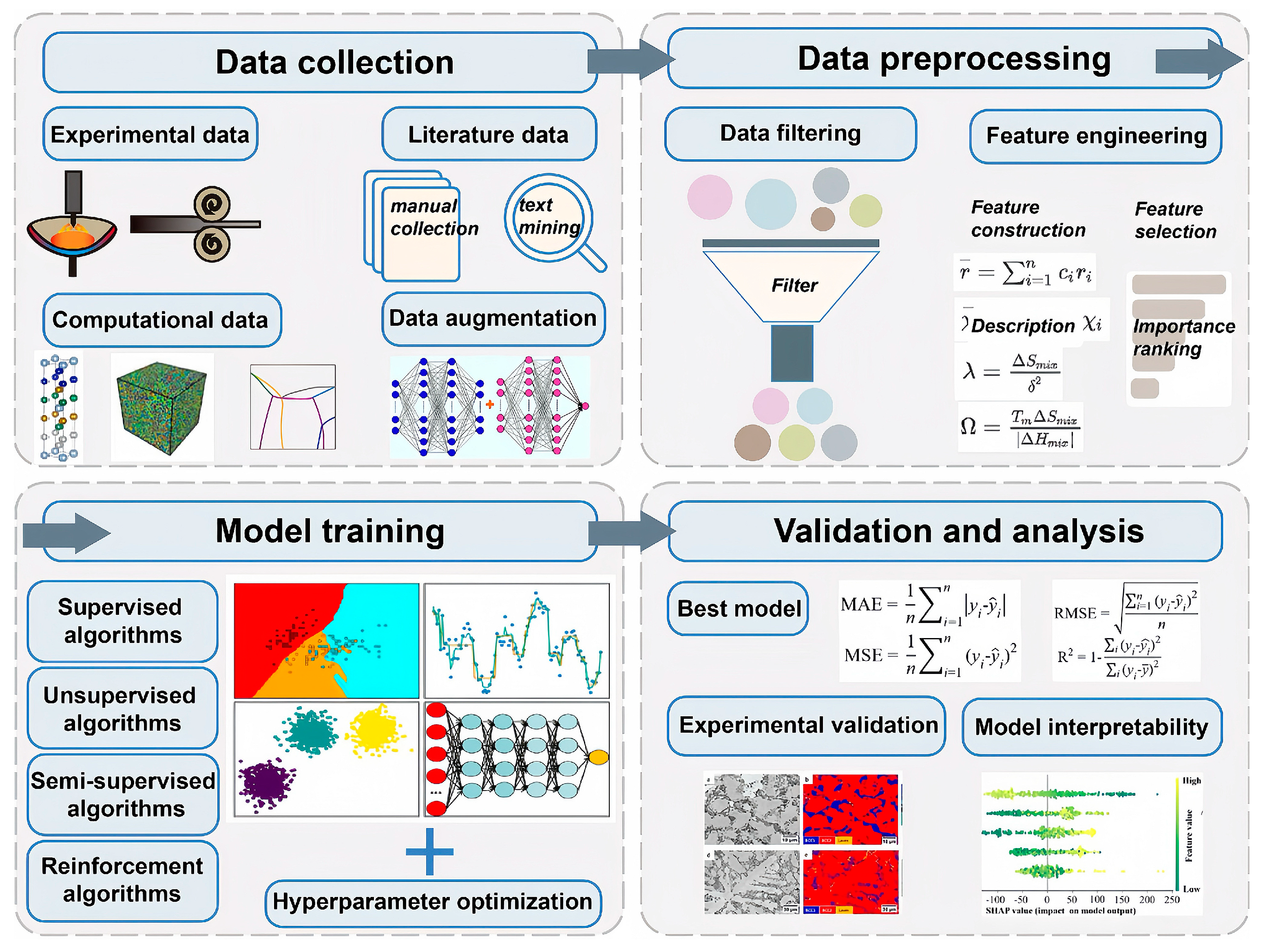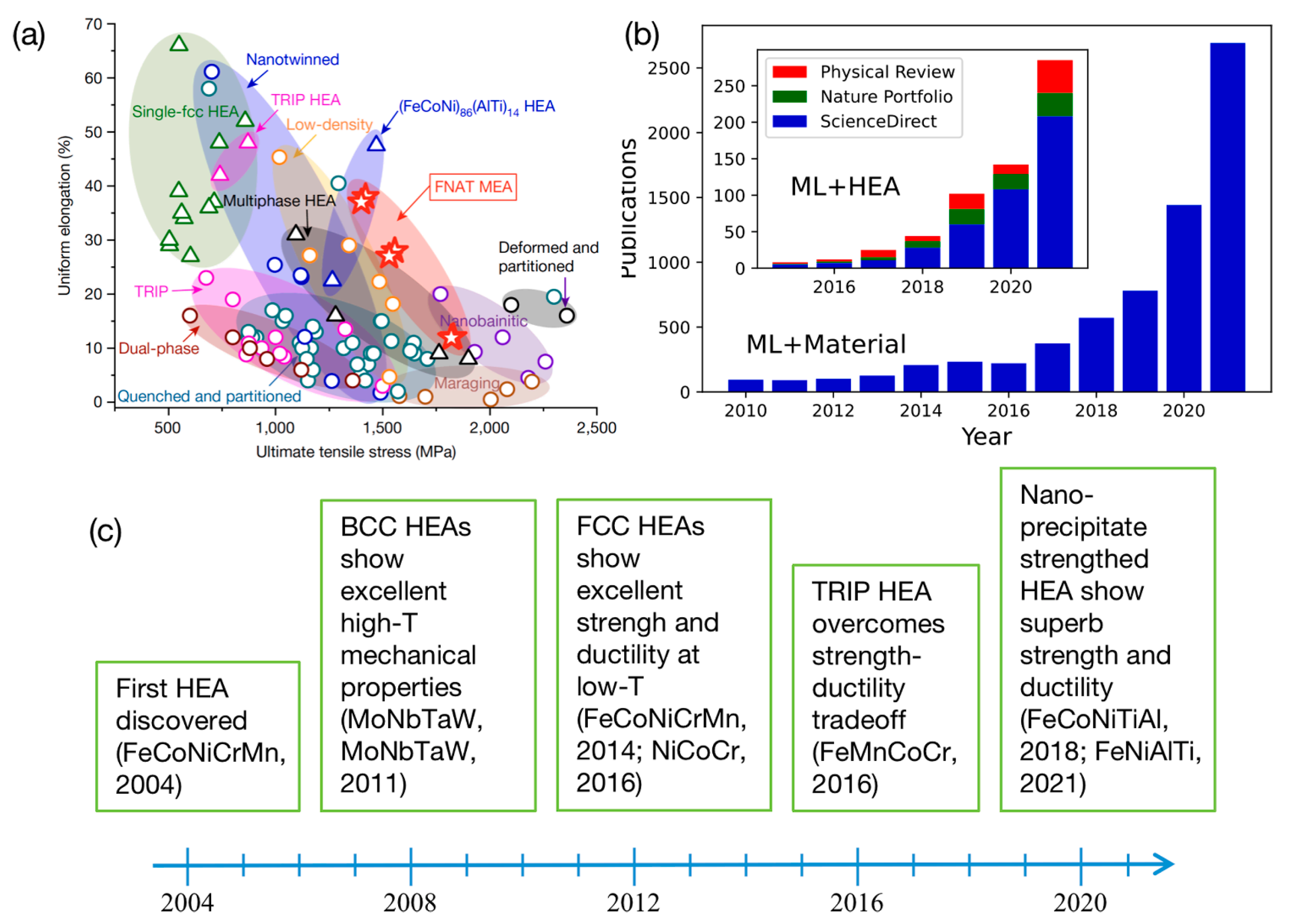 | Knowledge Management | Experimental data and theoretical insights are fragmented across a rapidly growing, unstructured literature. | Automated mining and synthesis of text to extract structured facts and build queryable knowledge graphs, integrating disparate findings. | Develop community-shared, high-quality HEA knowledge bases with standardized ontologies and robust entity-linking tools. |