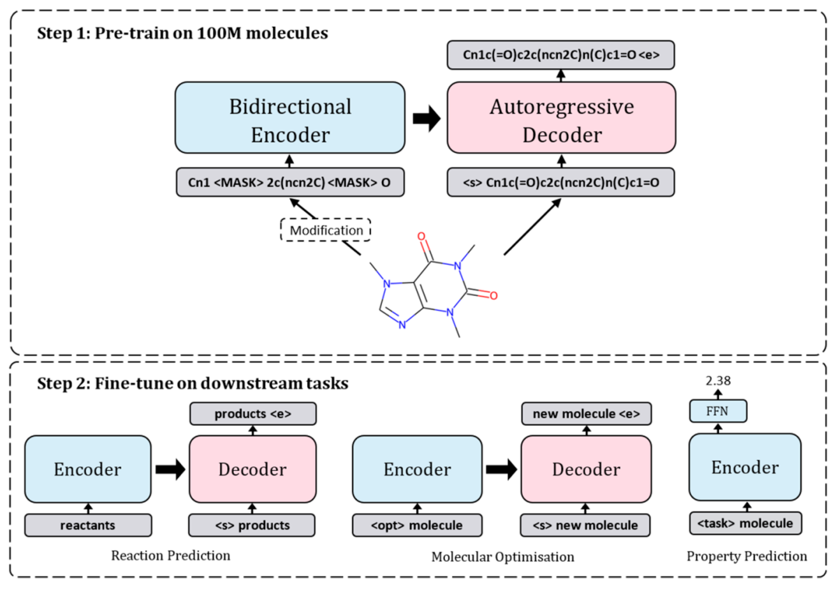 - Irwin, R.; Dimitriadis, S.; He, J.; Bjerrum, E.J. Chemformer: A pre-trained transformer for computational chemistry. Mach. Learn. Sci. Technol. 2022, 3, 015022. [Google Scholar] [CrossRef]
