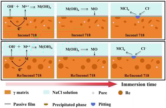 - Majchrowicz, K.; Pakiela, Z.; Kaminski, J.; Plocinska, M.; Kurzynowski, T.; Chlebus, E. The Effect of Rhenium Addition on Microstructure and Corrosion Resistance of Inconel 718 Processed by Selective Laser Melting. Metall. Mater. Trans. A 2018, 49, 6479–6489. [Google Scholar] [CrossRef]