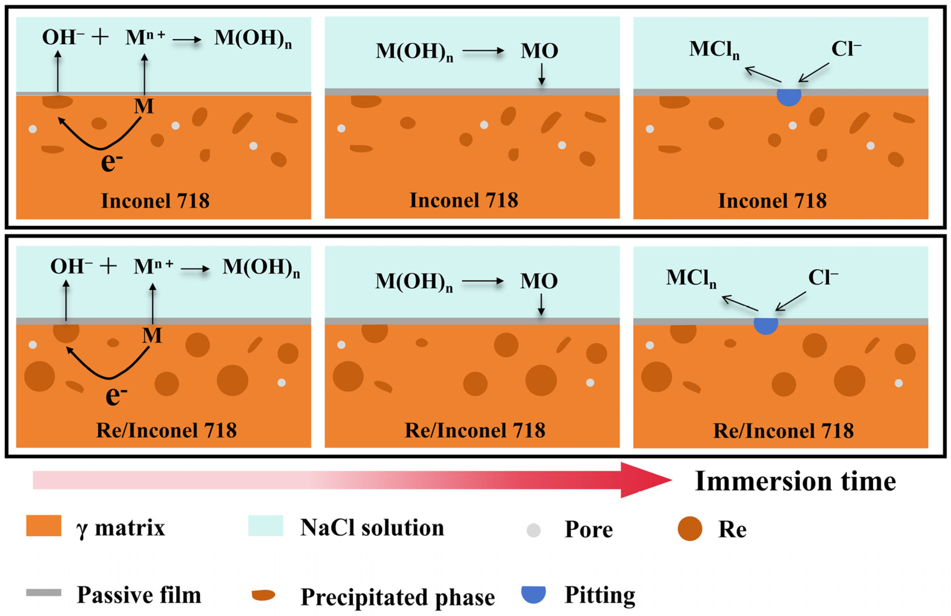 - Majchrowicz, K.; Pakiela, Z.; Kaminski, J.; Plocinska, M.; Kurzynowski, T.; Chlebus, E. The Effect of Rhenium Addition on Microstructure and Corrosion Resistance of Inconel 718 Processed by Selective Laser Melting. Metall. Mater. Trans. A 2018, 49, 6479–6489. [Google Scholar] [CrossRef]