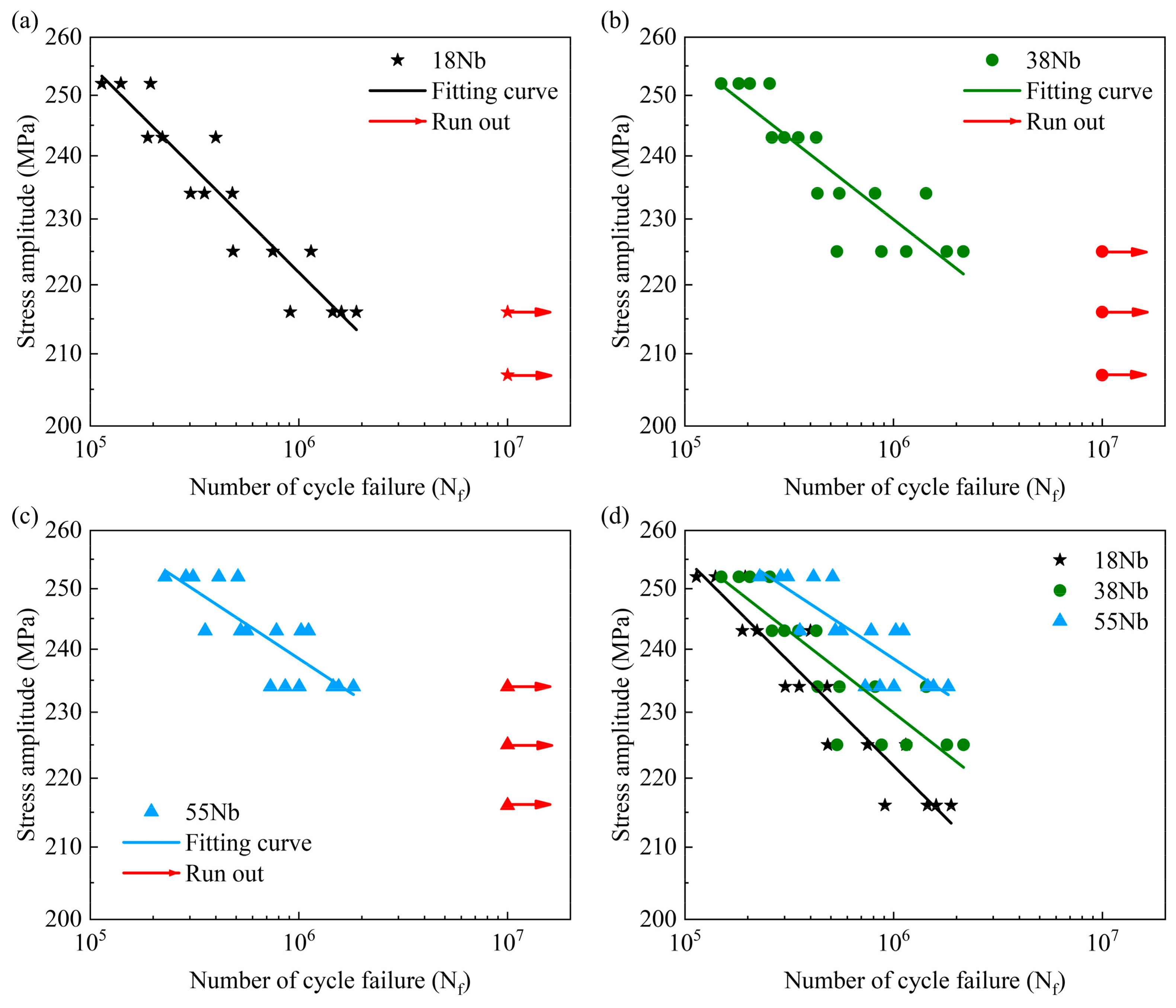 - For the low-carbon microalloyed steels, the increase in Nb content resulted in enhanced fatigue crack initiation and propagation lifetimes, thereby increasing the high-cycle fatigue strength of the CGHAZ.