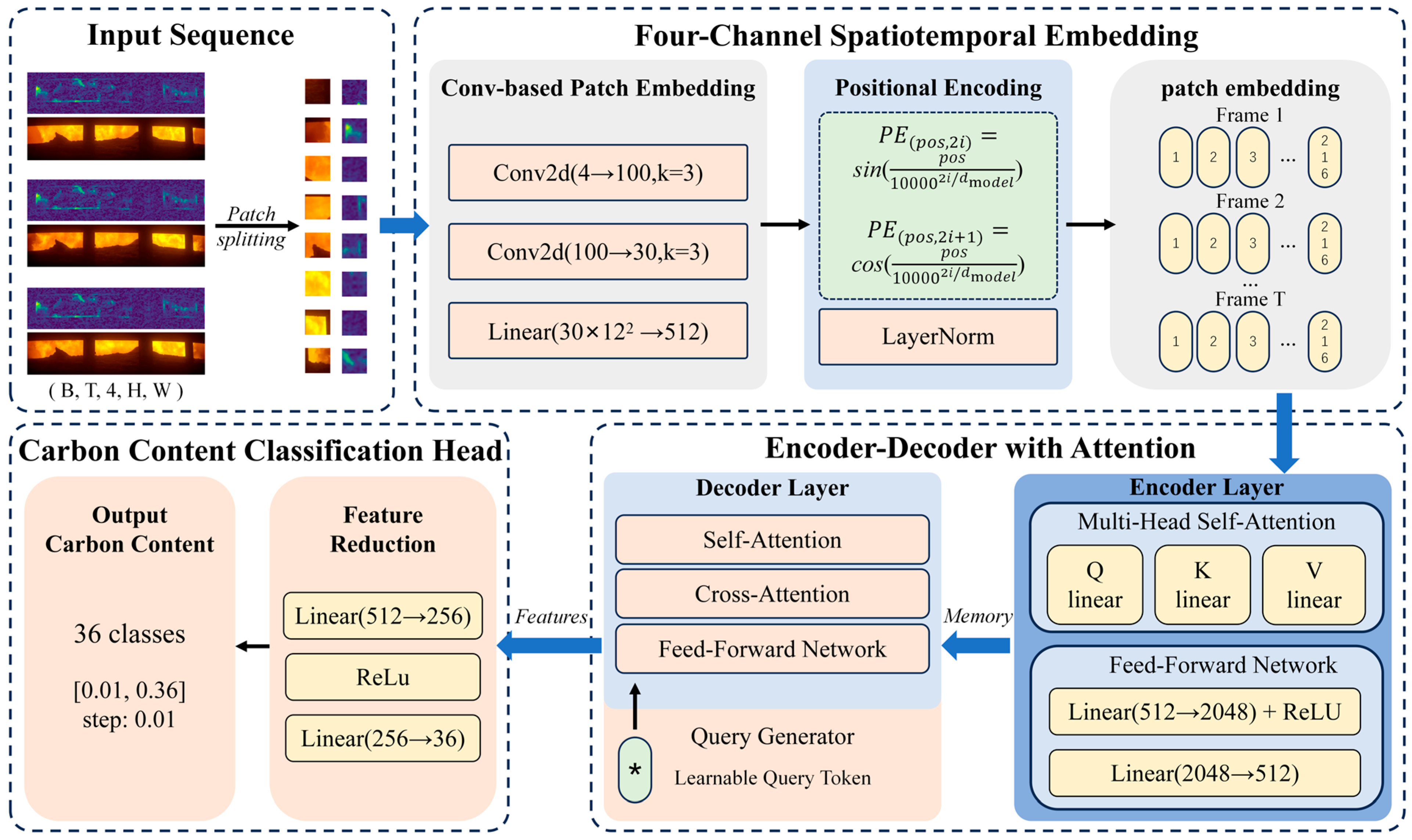 - This study innovatively employs a classification-based approach for carbon content prediction by discretizing the carbon content into multiple distinct categories. Compared to conventional regression-based methods, the proposed classification strategy not only reduces prediction difficulty but also better aligns with industrial requirements.