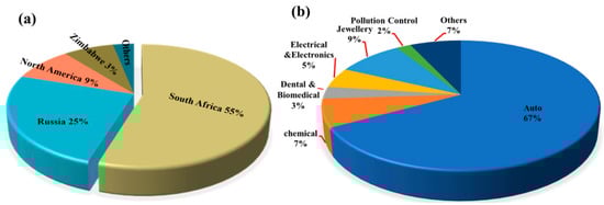 (a) Global distribution of PGMs reserves; (b) application of PGMs.