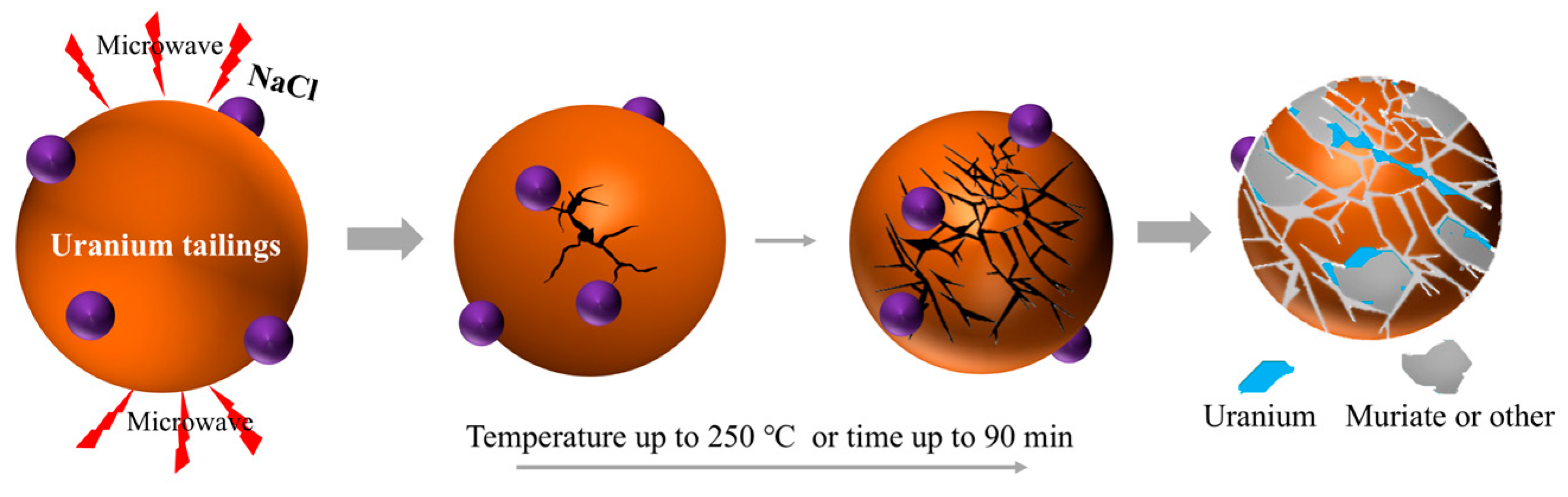 - Hu, J.; Song, J.; Hu, T.; Zhang, L.; Wang, Y.; Zou, F. Low-Temperature Chlorination-Roasting–Acid-Leaching Uranium Process of Uranium Tailings: Comparison Between Microwave Roasting and Conventional Roasting. Processes 2025, 13, 82. [Google Scholar] [CrossRef]