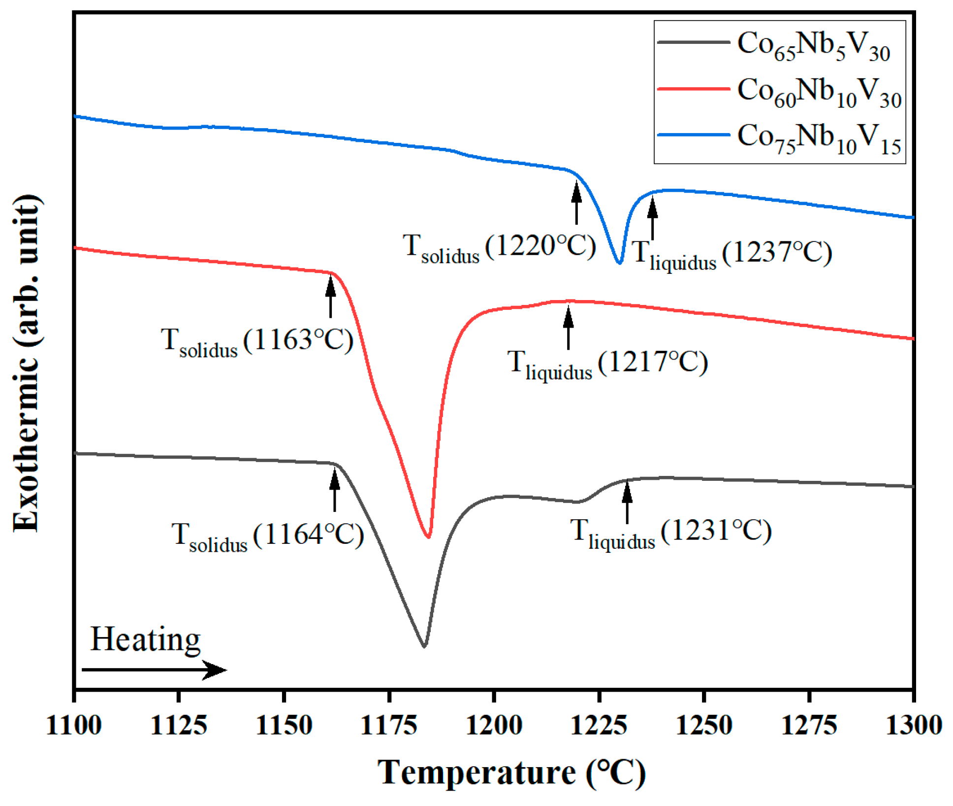 | Alloy (at.%) | Solidus Temperature (°C) | Liquidus Temperature (°C) |