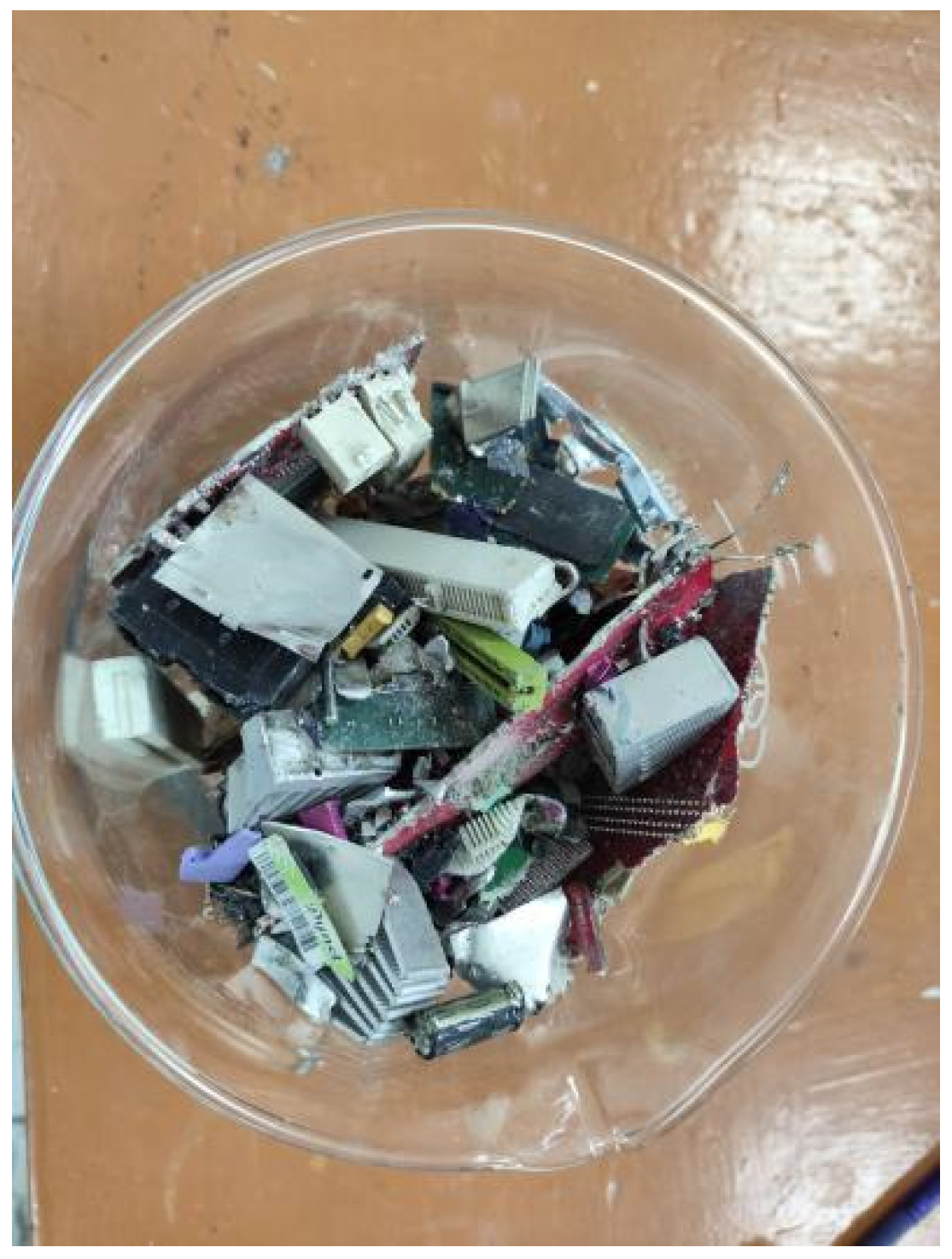 - Zhao, W.; Xu, J.; Fei, W.; Liu, Z.; He, W.; Li, G. The reuse of electronic components from waste printed circuit boards: A critical review. Environ. Sci. Adv. 2023, 2, 196–214. [Google Scholar] [CrossRef]