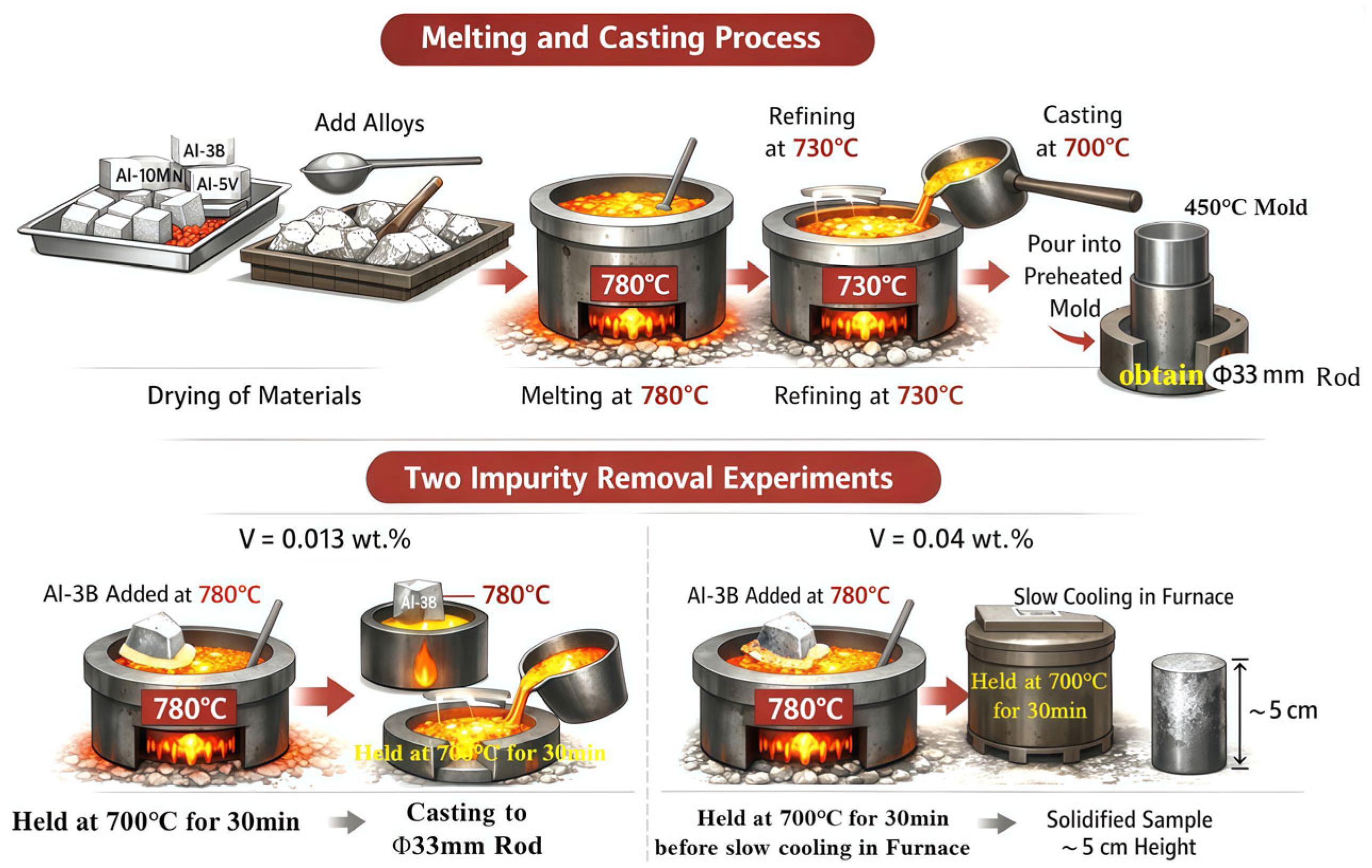 3.4. Removal of Impurity Element V from 8030 Aluminum Rods Using Al-3B
