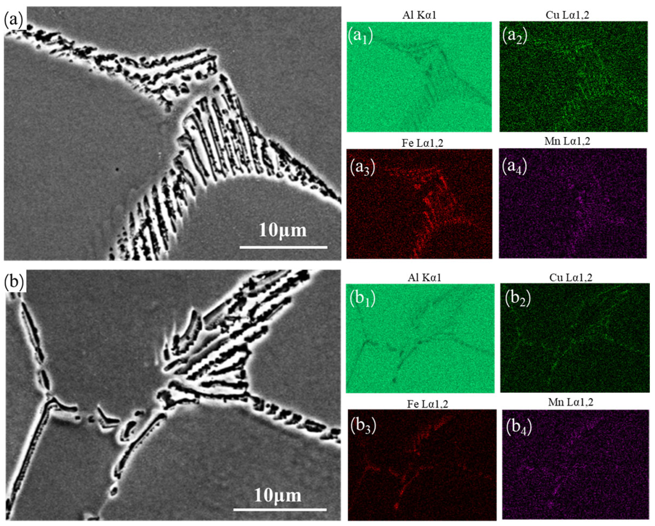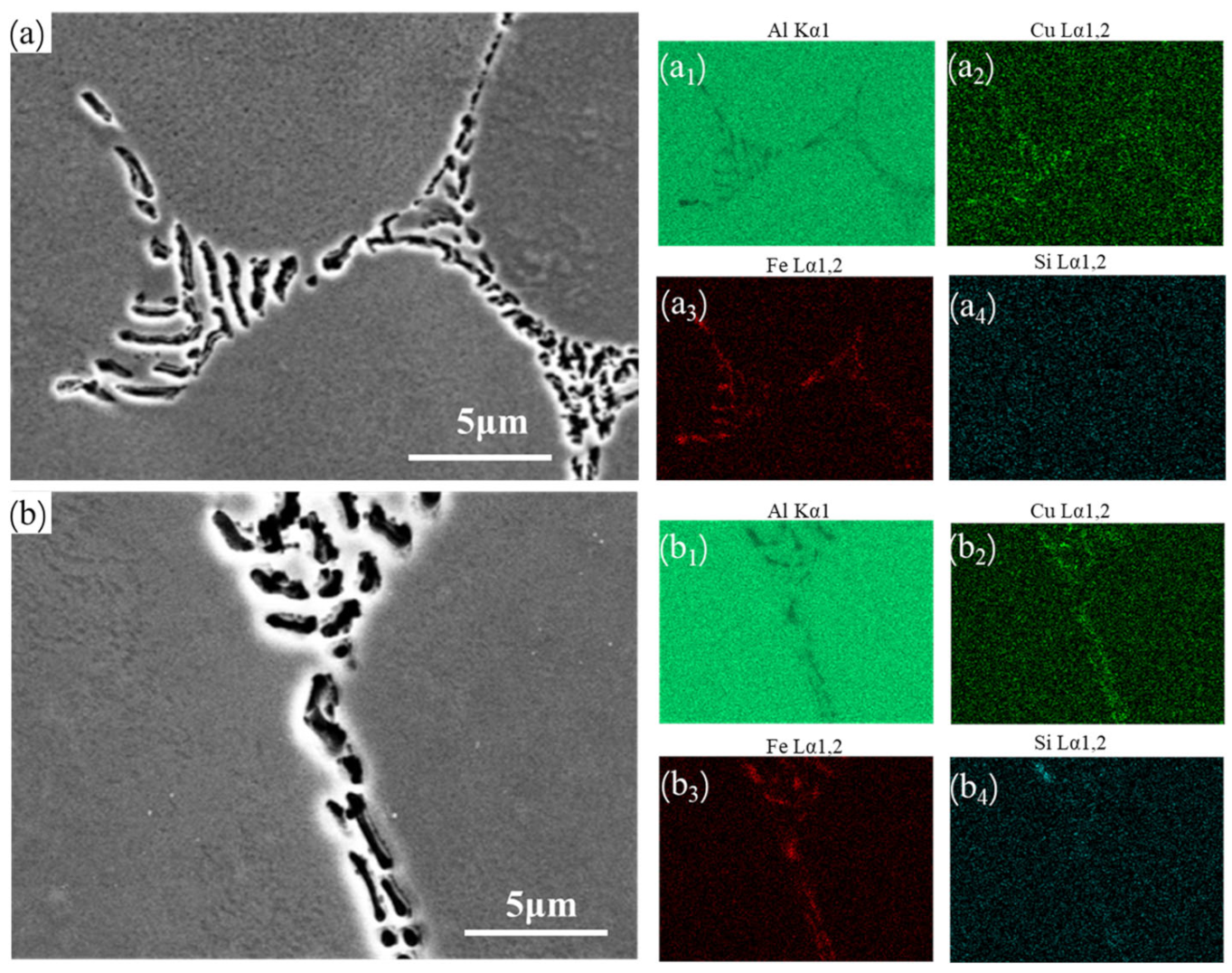 - Yang, W.C.; Gao, F.; Ji, S.X. Formation and sedimentation of Fe-rich intermetallics in Al–Si–Cu–Fe alloy. Trans. Nonferrous Met. Soc. China 2015, 25, 1704–1714. [Google Scholar] [CrossRef]