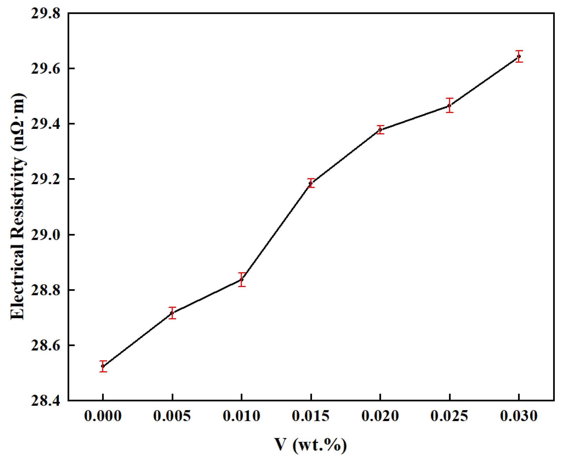 3.3. Effect of V on the Electrical Resistivity of 8030 Aluminum Rods