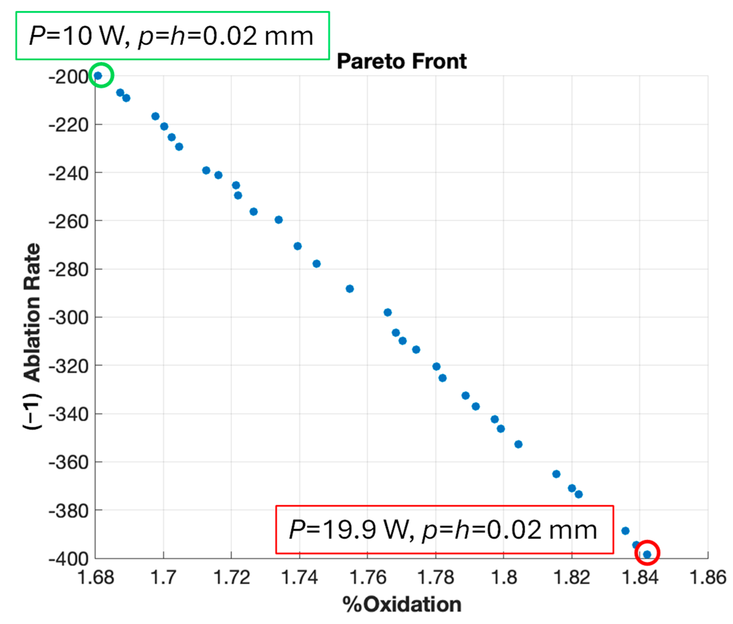 3.4. Optimization Results for Surface Oxidation Density and Ablation Rate Process Models