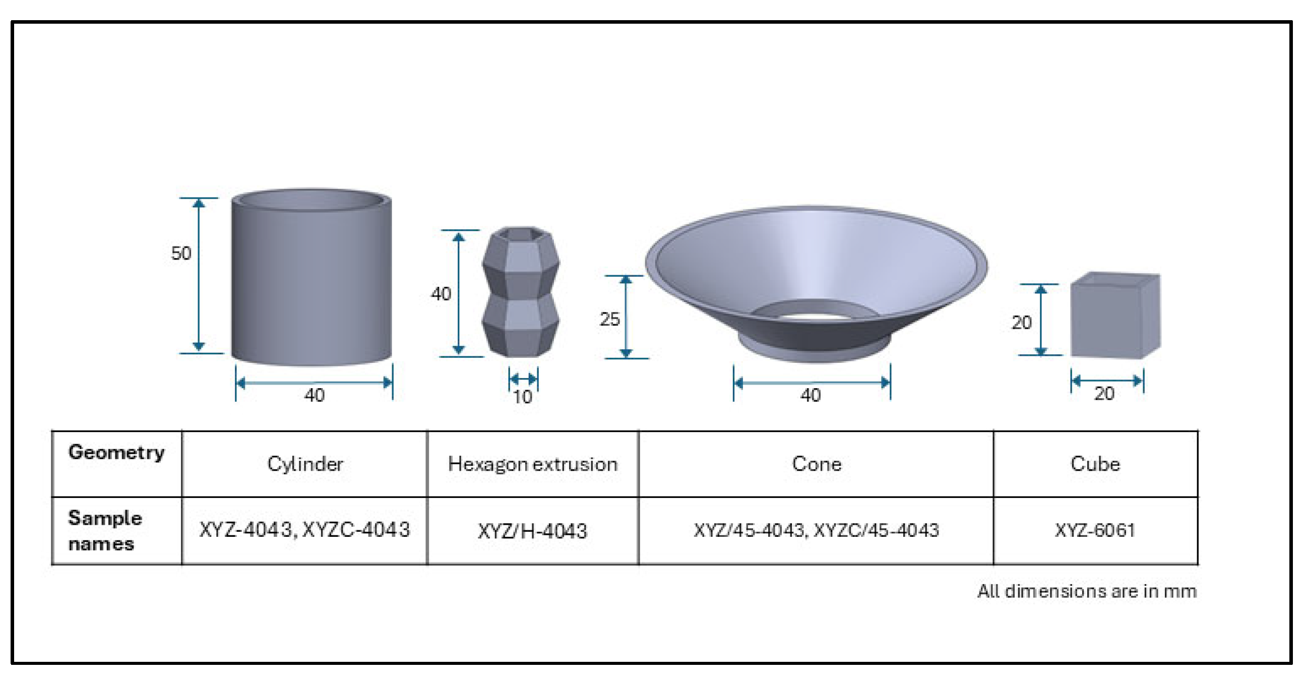 | Sample | XYZ-4043 | XYZC-4043 | XYZ/H-4043 | XYZ/45-4043 | XYZC/45-4043 |