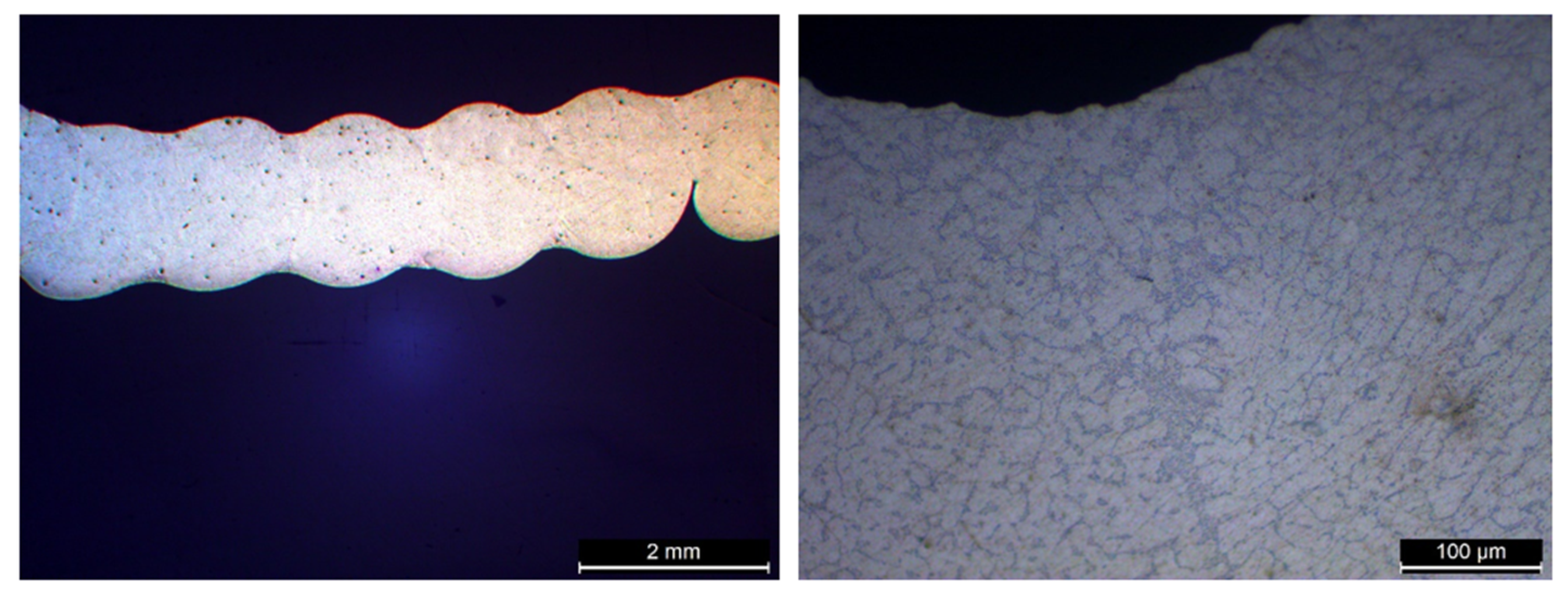 - Langelandsvik, G.; Horgar, A.; Furu, T.; Roven, H.J.; Akselsen, O.M. Comparative study of eutectic Al-Si alloys manufactured by WAAM and casting. Int. J. Adv. Manuf. Technol. 2020, 110, 935–947. [Google Scholar] [CrossRef]