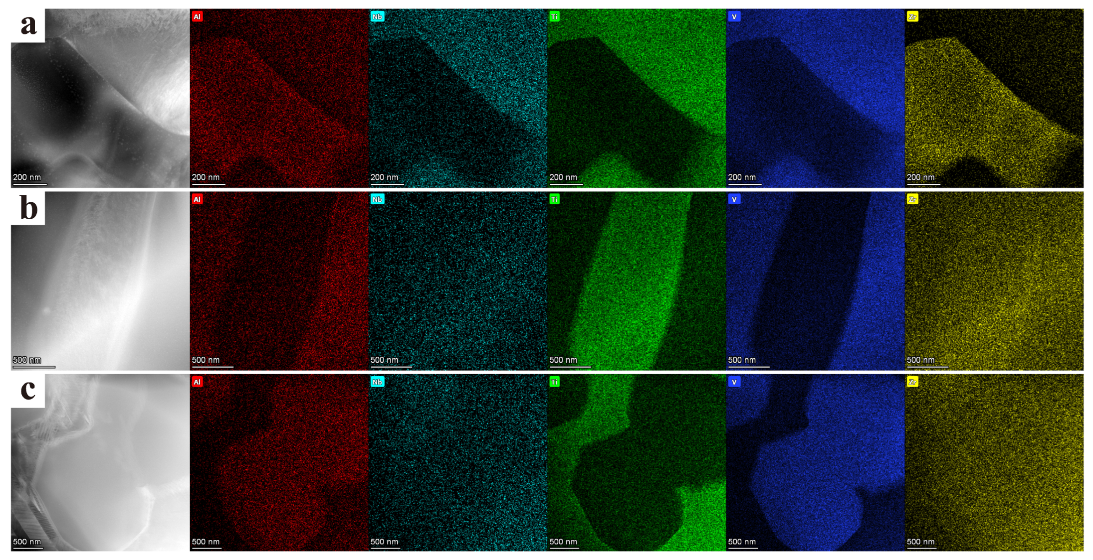 - Zhi, Q.; Tan, X.; Liu, Z.; Liu, Y.; Zhang, Q.; Chen, Y.; Li, M. Effect of Zr content on microstructure and mechanical properties of lightweight Al2NbTi3V2Zrx high entropy alloy. Micron 2021, 144, 103031. [Google Scholar] [CrossRef]