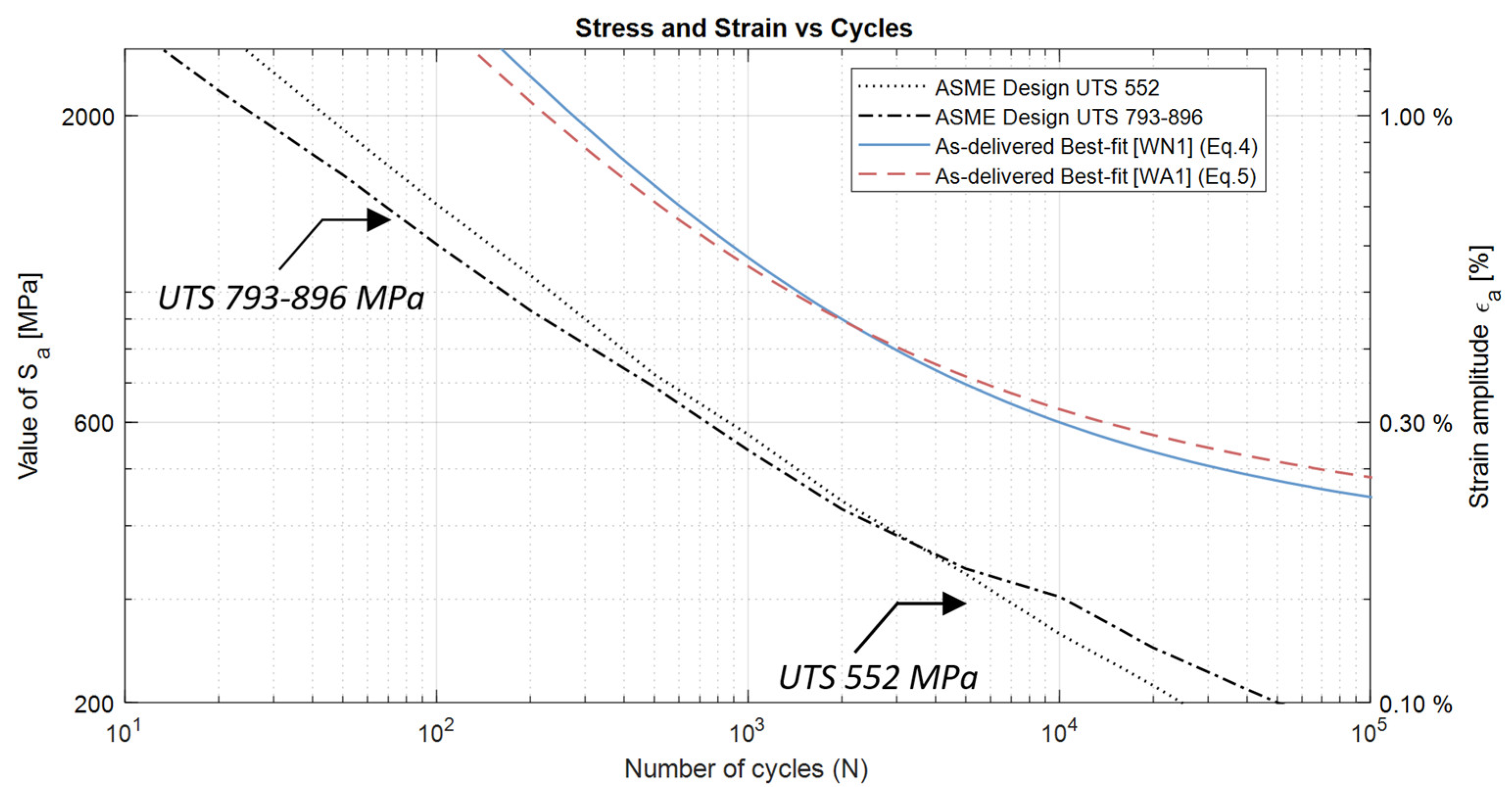 4.2. How Does the Fatigue Resistance of the As-Delivered Weld Metal Compare with the ASME Code Design Curve?