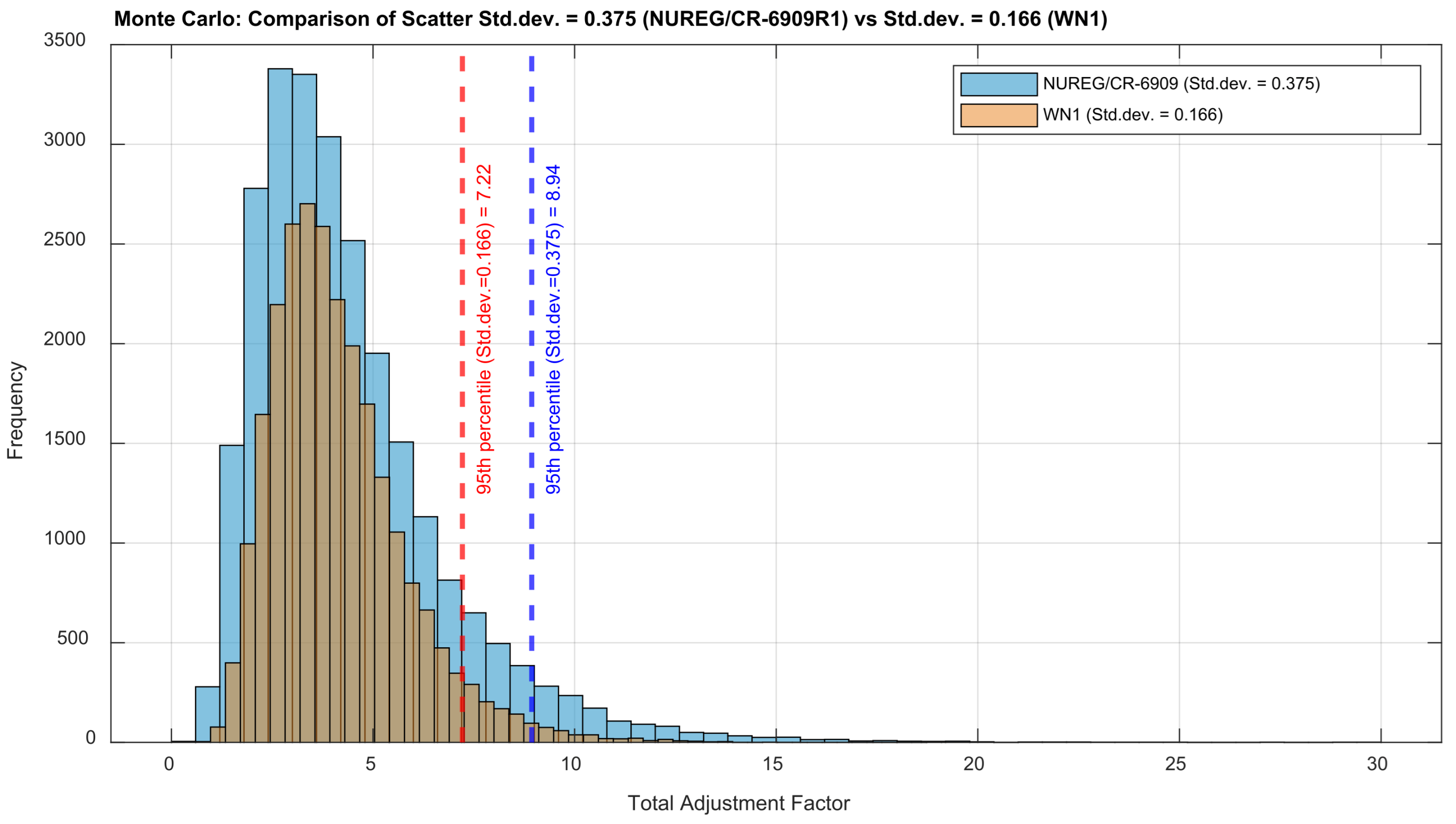 | Scatter of data (including material variability) | 2.0 | 2.1 (Std. dev. 0.375) | 1.8 (Std. dev. 0.166) |