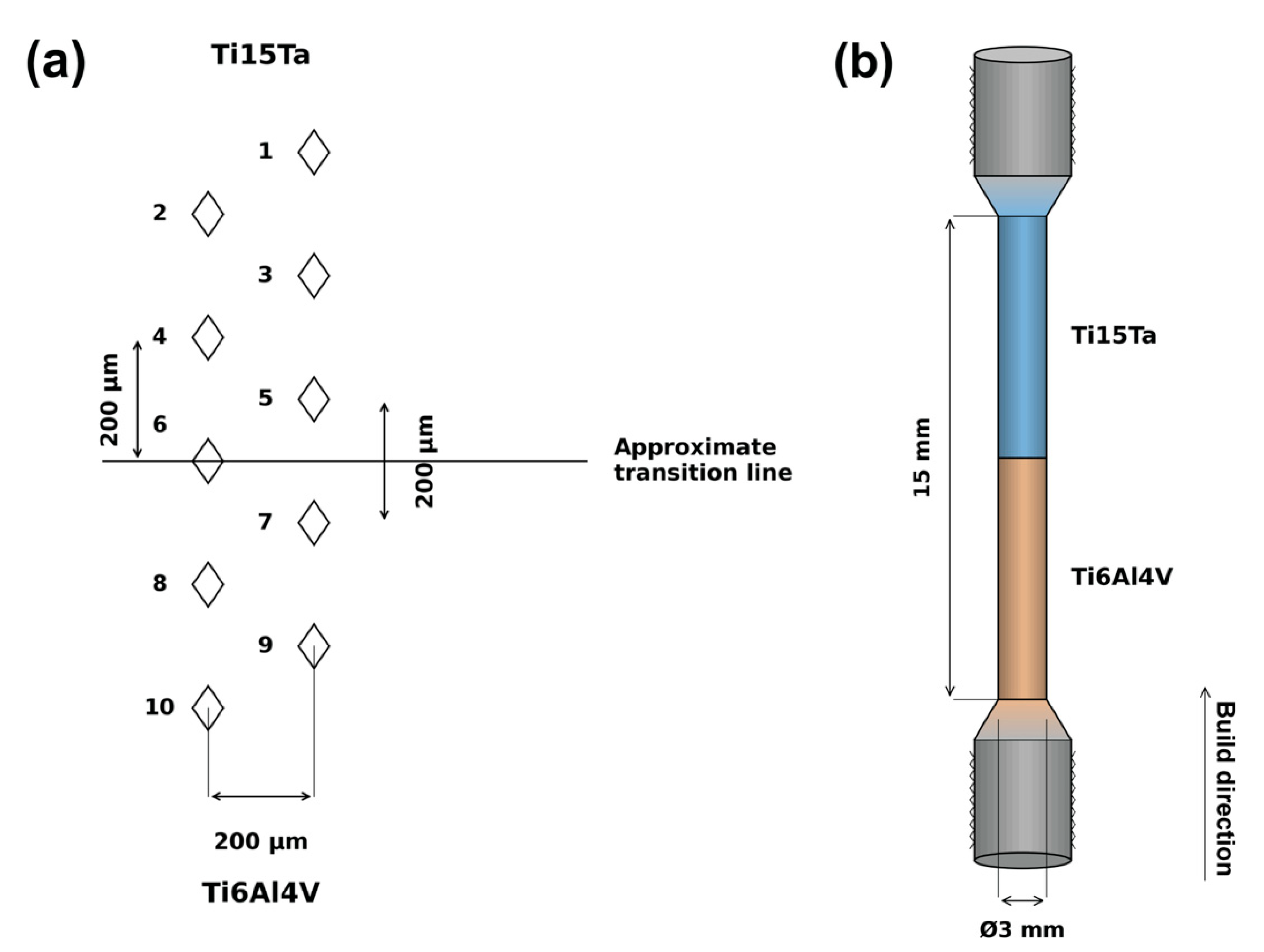 Chicago/Turabian StylePolozov, Igor, Victoria Nefyodova, Anton Zolotarev, Victoria Sokolova, Sergey Chibrikov, and Anatoly Popovich. 2026. "Selective Laser Melting of Multi-Material Ti15Ta/Ti6Al4V Structures for Biomedical Applications: From Process Parameters to Mechanical Properties and Biological Response" Metals 16, no. 3: 301. https://doi.org/10.3390/met16030301
