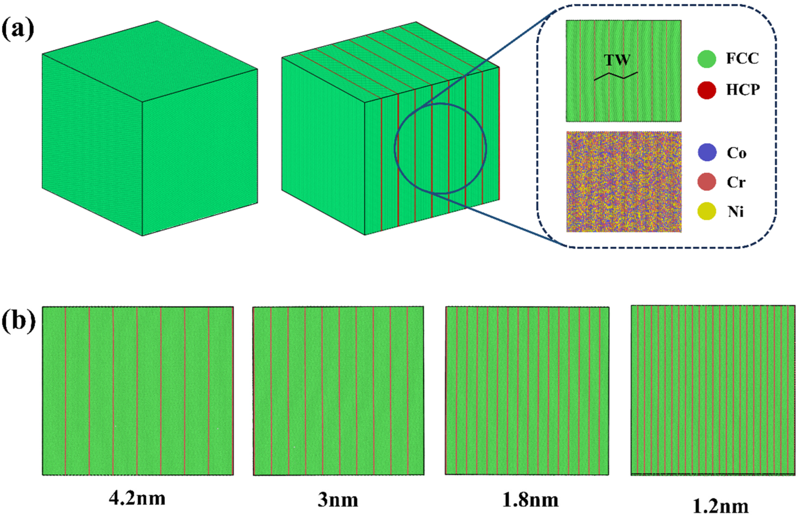 APA StyleYang, Y., Zhang, J., Wang, K., Dong, H., Hao, H., Duan, Y., Liu, W., & Kang, J. (2026). Molecular Dynamics Study on the Effect of Twin Spacing on Mechanical Properties and Deformation Mechanisms of CoCrNi Medium-Entropy Alloys. Metals, 16(3), 333. https://doi.org/10.3390/met16030333