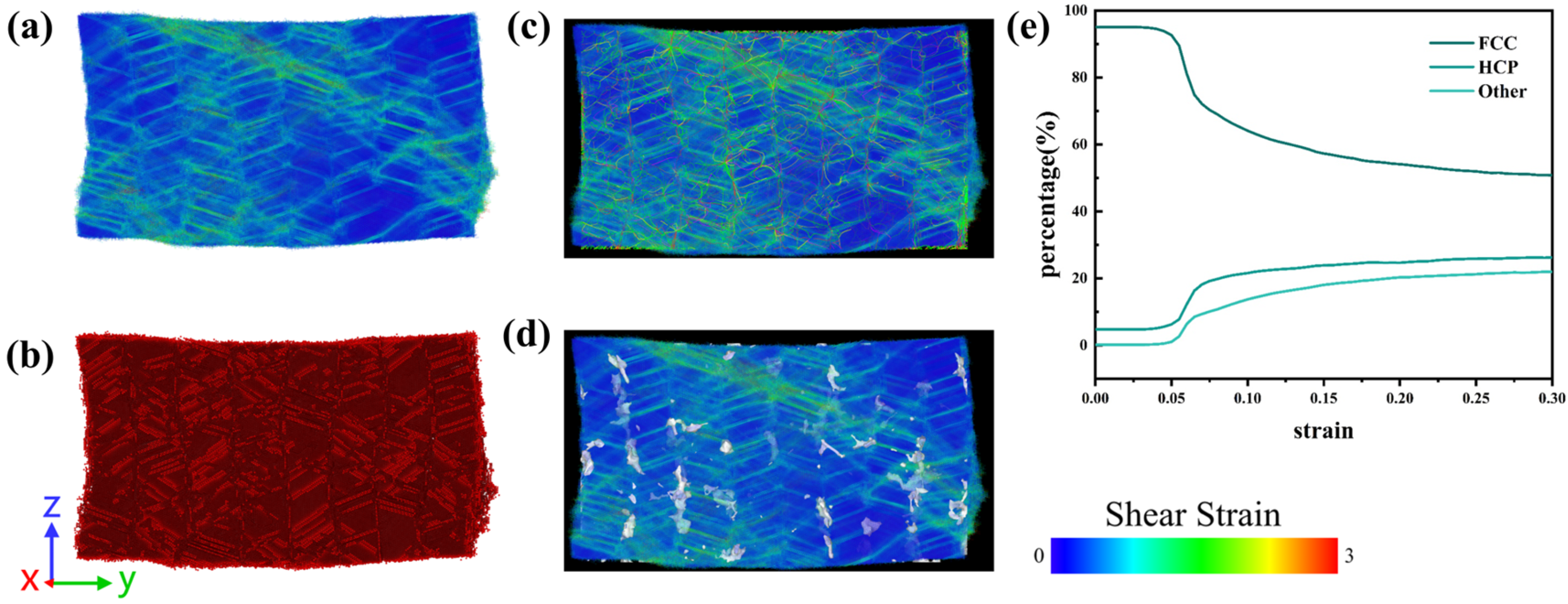 - Dong, H.; Ning, T.; Wu, D.; Ma, H.; Wang, Q.; Feng, Z.; Su, R. TRIP-TWIP effect in deformation mechanisms of Co–Cr–Ni medium entropy via molecular dynamics simulations. J. Mater. Res. Technol. 2024, 28, 1303–1317. [Google Scholar] [CrossRef]