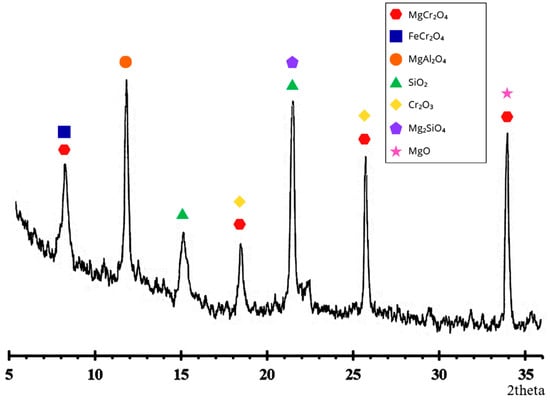 X-ray diffraction (XRD) analysis was performed on an Empyrean Malvern Panalytical diffractometer (Malvern Panalytical, Almelo, The Netherlands) (CuKα, 2θ range 0–80°) with a scanning step of 0.01° to determine the phase compounds of the chrome concentrate. The XRD results are shown in Figure 1.