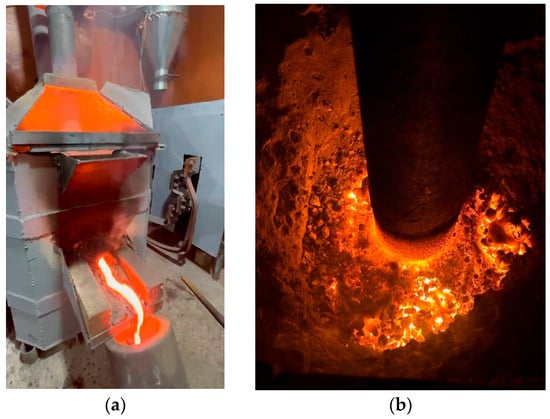 The electric furnace was heated for 4 h on a coke bed, which acts as a conductor of electric current. Upon completion of the heating period, the furnace was completely cleared of any remaining coke bed. The electrical mode during the heating period was maintained at a secondary voltage of 24.6 V and a high-side current of 50–70 A.