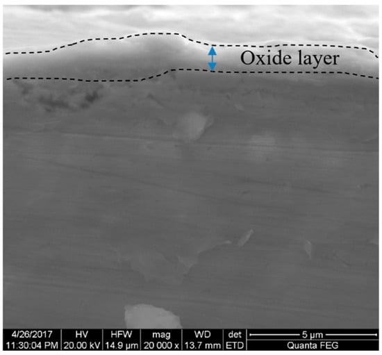 In addition, in regions where carbide and oxide coexist, carbides are very likely oxidized to form oxide [33]. The outward cation migration may be the rate-limiting step due to the existence of a diffusion layer (as shown in Figure 9). If oxygen diffusion were the rate-limiting step, it is unlikely that a diffusion layer would form because the oxygen would not diffuse before the oxide.