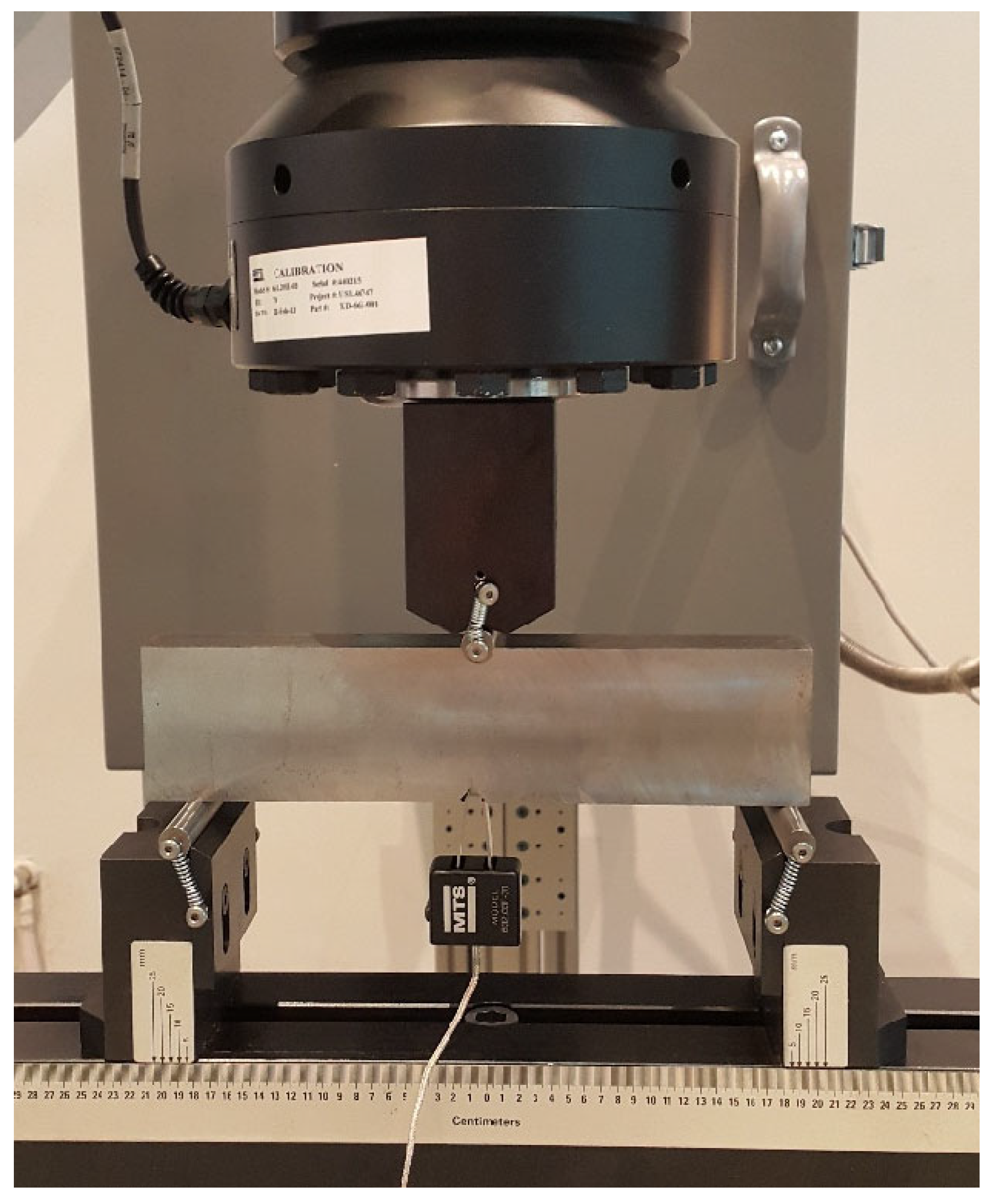 - ASTM E399-22; Standard Test Method for Linear-Elastic Plane-Strain Fracture Toughness of Metallic Materials. ASTM International: West Conshohocken, PA, USA, 2022.
