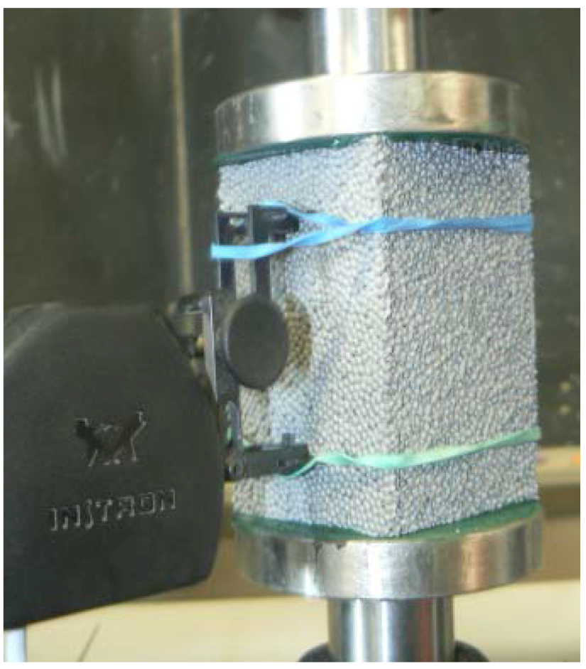 - (iii) Unloadings every 0.5% to 1.0% strain, longitudinal extensometer (dimensions: 52 mm by 55mm by either 80 mm ± 2% or 140 mm ± 2%).