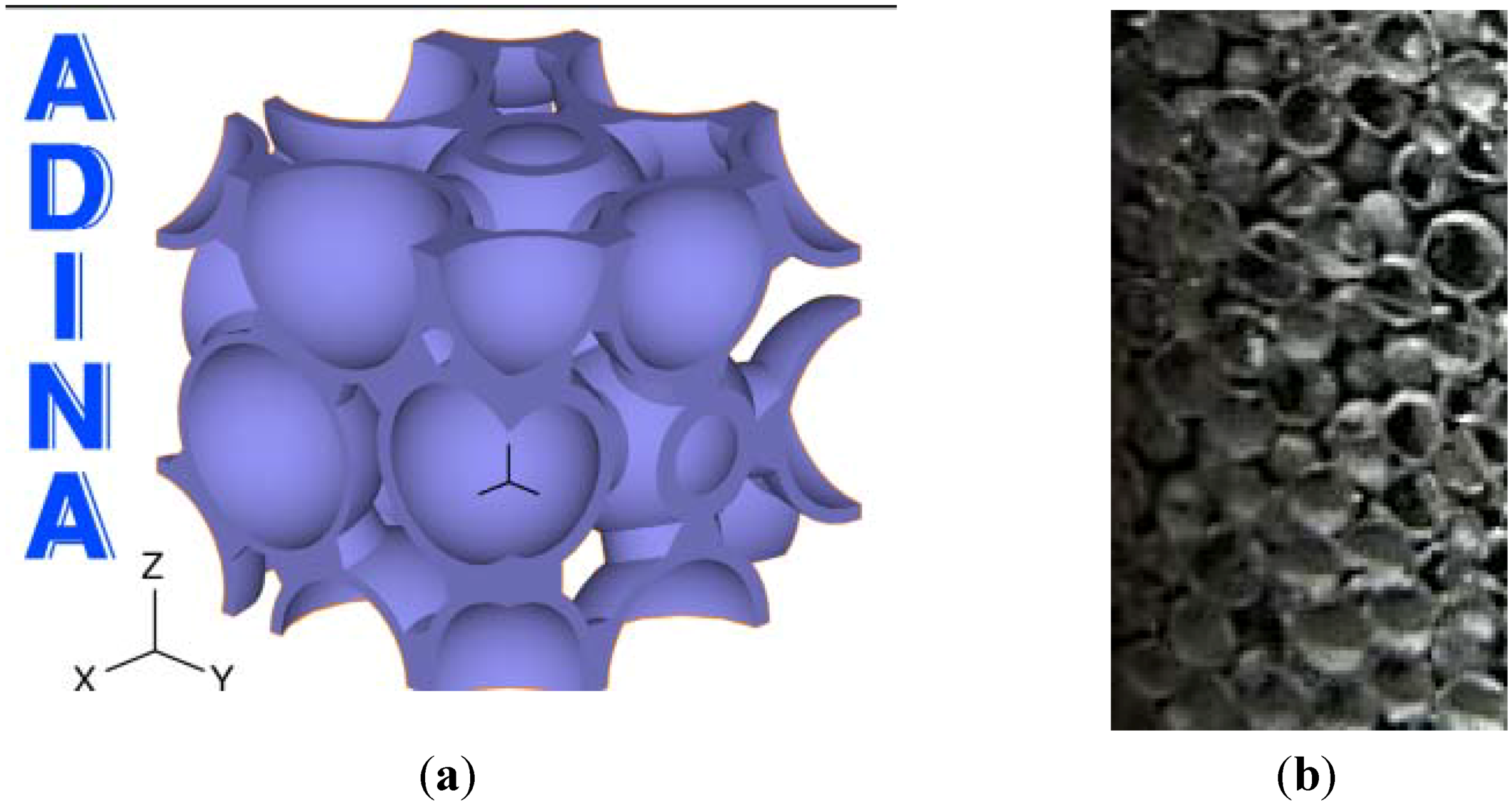 (a) Sample geometry generated by hollow sphere algorithm;(b) Steel foam surface.