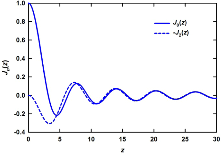 which is similar to J0(z) but is sufficiently different, as shown in Figure 4. This results in small but significant differences in the anisotropic PDF particularly at short distances [23,38].