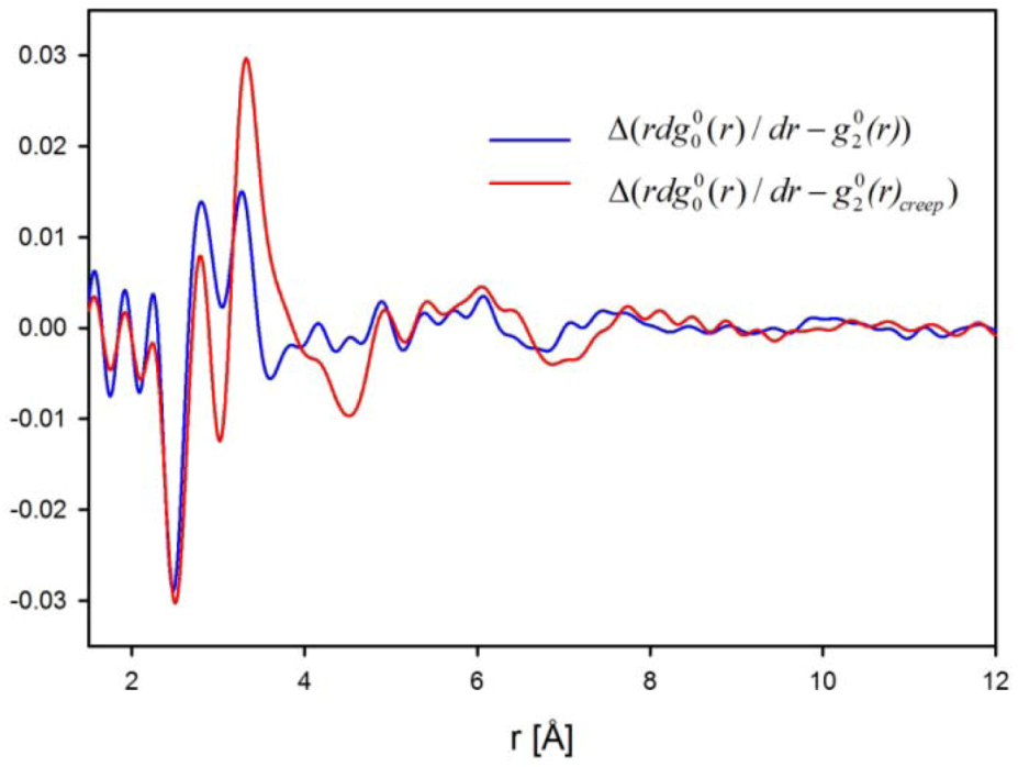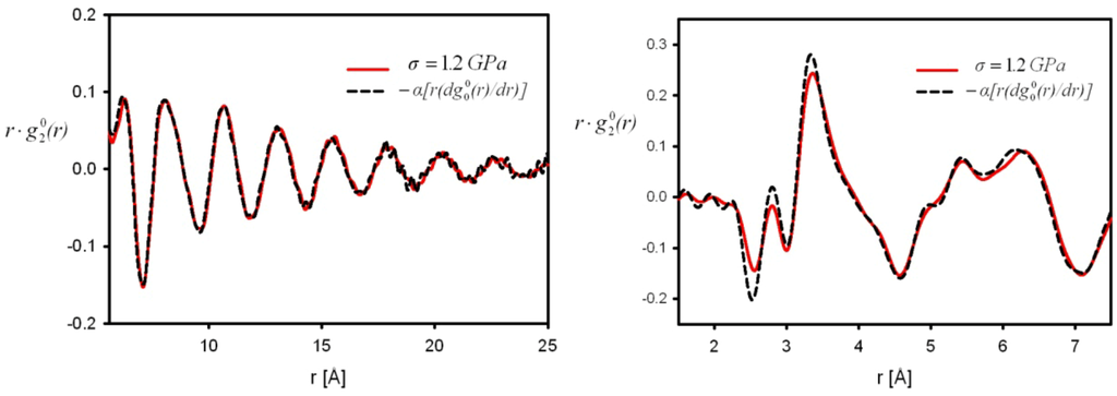 is close to the derivative as shown in Figure 5 [42], particularly at large distances, and the magnitude of the strain thus determined agrees with the macroscopic strain. However, there are small but significant deviations at short distances. The interpretation of these deviations is still an open question as discussed below. It should also be noted that in order to discuss such small deviations it becomes important to use the Bessel transformation, Equation (11), rather than the Fourier-transformation, Equation (9).
