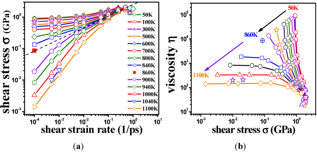 - Iwashita, T.; Egami, T. Atomic mechanism of flow in simple liquids under shear. Phys. Rev. Lett. 2012, 108, 196001. [Google Scholar] [CrossRef]